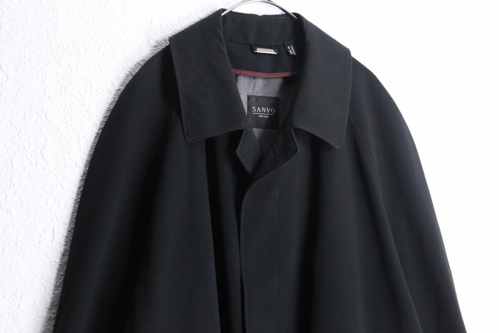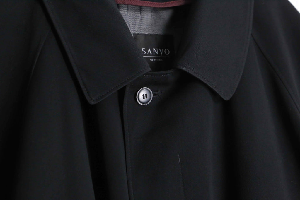 日本を代表するコートメーカー、SANYOが手掛けた、独特の光沢と高い耐久性を併せ持つポリギャバジン素材のバルマカーンコート。