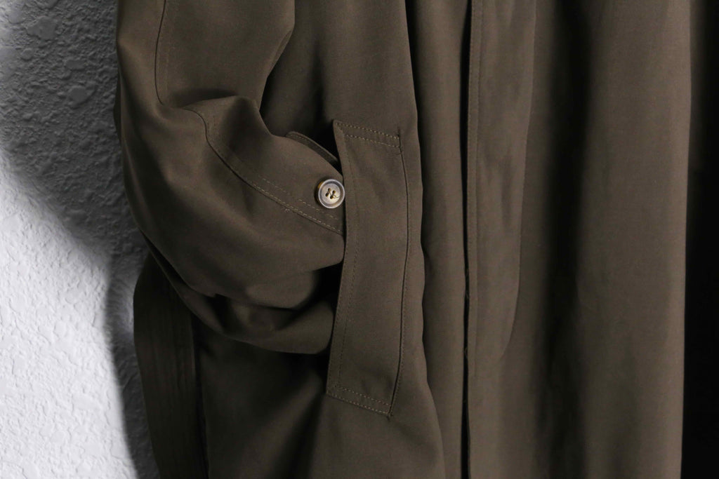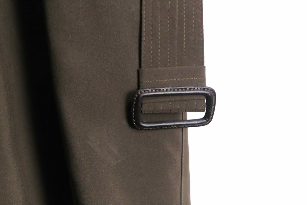 深く沈み込んだような奥深いブラウンの色彩設計と、触れずとも伝わる上質なスムースファブリックの質感、ライナー下半分にはアメリカントラッドを象徴するブラックウォッチ柄をあしらった本当に素晴らしいと思えるコート。一切の妥協を許さない当時の作り込みが融合した類い稀なるロングコートです。