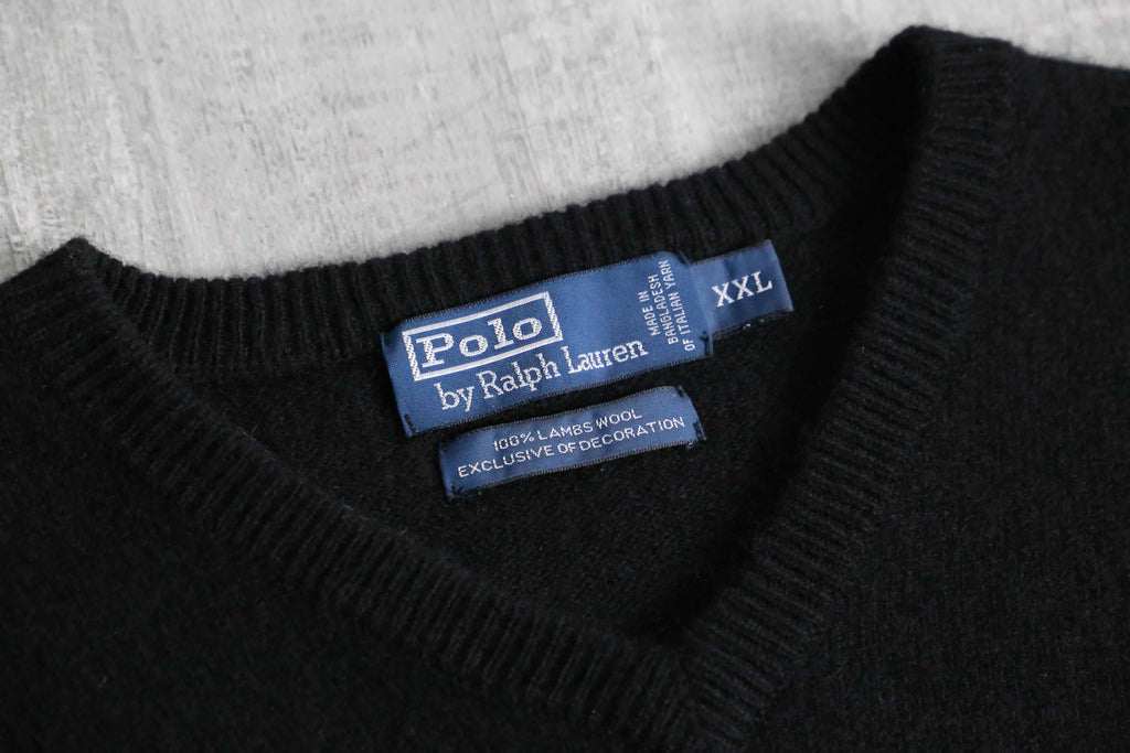 90年代後半から2000年代にかけて展開された、イタリア産の上質な糸を贅沢に使用したラルフの100%ラムウールVネックニット。この時期のラルフローレンは、イタリア産の高級な糸をアジアの拠点で縫製する形が多く見られ、品質とコストパフォーマンスのバランスが良いのが特徴。