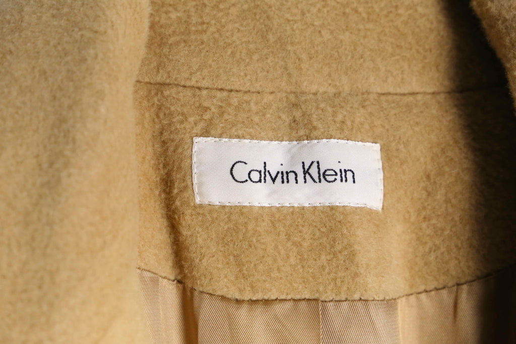 1970年代後半から80年代初頭、ミニマリズムの化身Calvin Kleinと、富裕層向けのアメリカ超高級百貨店Neiman Marcusがタッグを組んで世に放った超スペシャルダブルネームロングコート。内側に配されたユニオンチケットは、この個体が世界で最も良質な服を仕立てていた時代の米国製であることの証明。アジアや中南米へと生産拠点が移る以前の、熟練の職人による手仕事がが、この唯一無二の美しいシルエットを作っています。