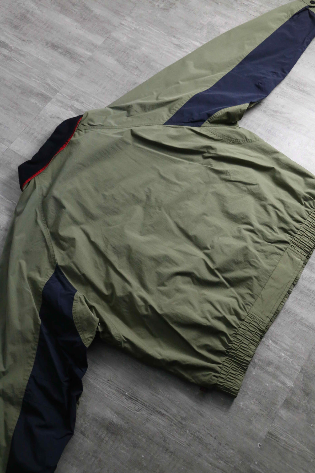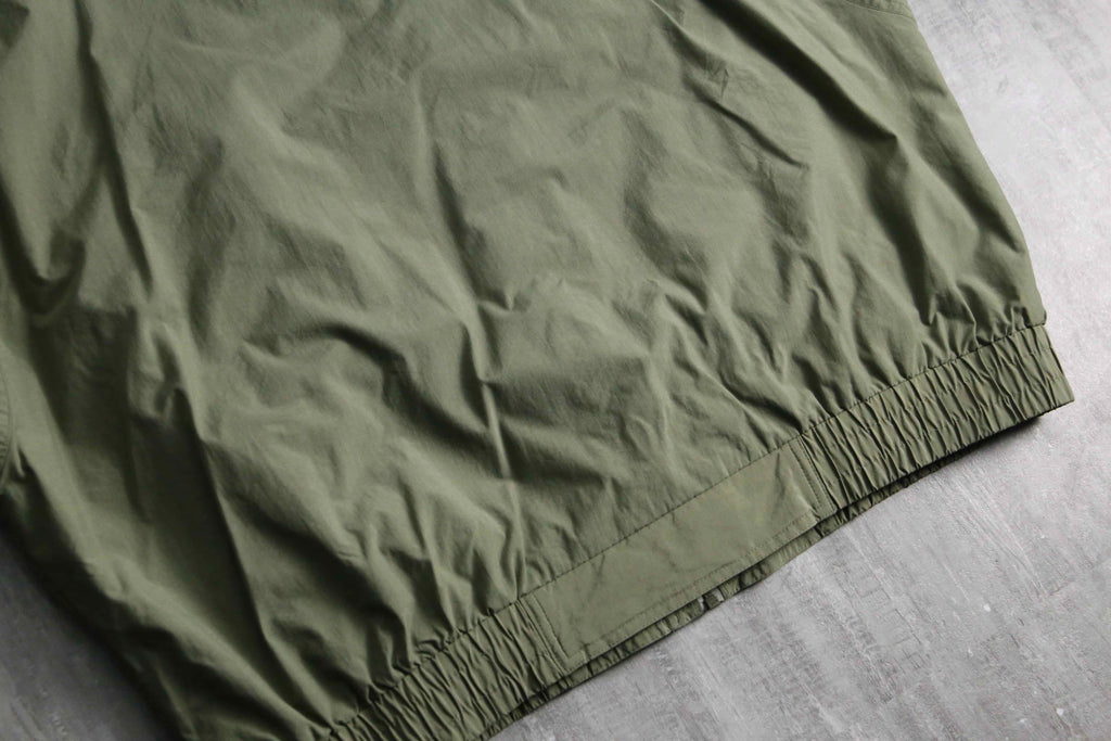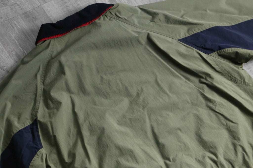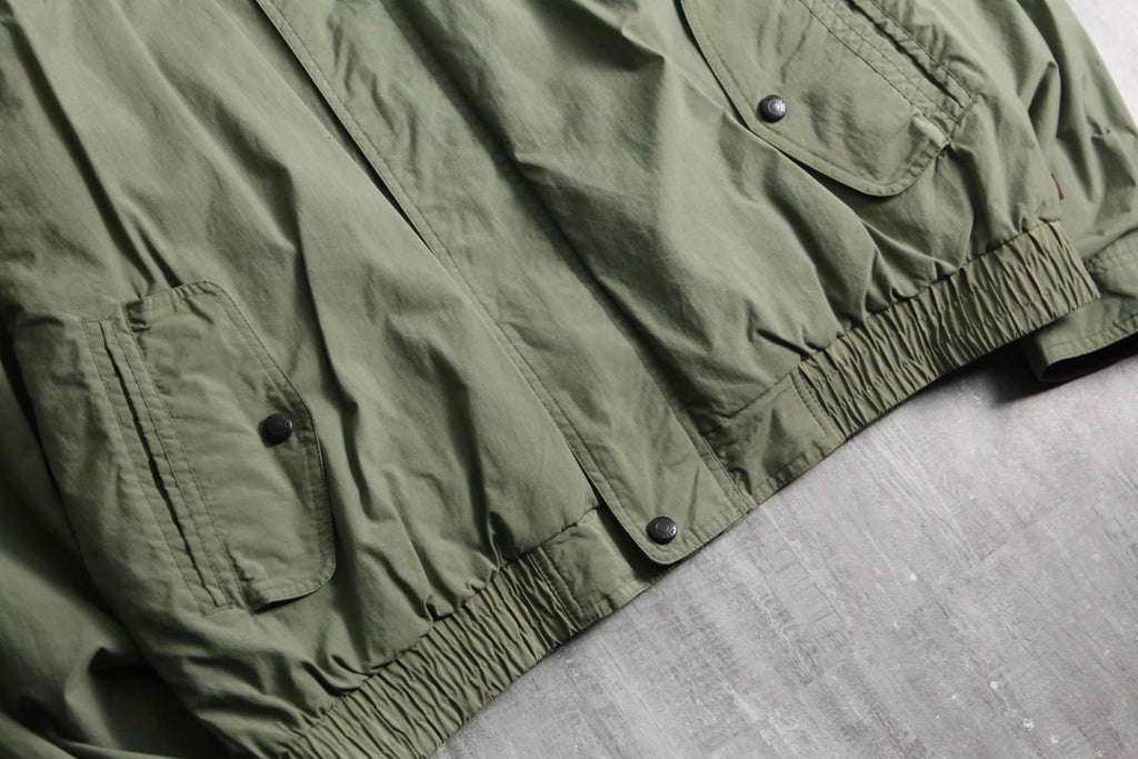 武骨なオリーブをベースに、袖のネイビー切り替えや襟裏の鮮やかなレッドが映える90s全開の好配色に加え、襟元はナイロンとフリースの二重構造、裏地には通気性に優れたメッシュライニングを採用するなど、デザイン、機能性ともに妥協のない作り込みが光ります。シルエットはふっくらとボリューミーなボンバーシルエット。春先に丁度良いナイロンファブリックなことから、春や秋には大活躍が見込めます。