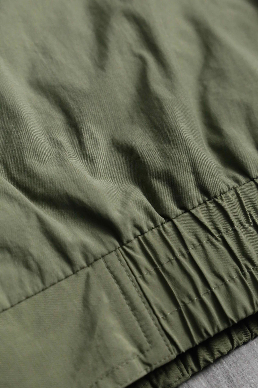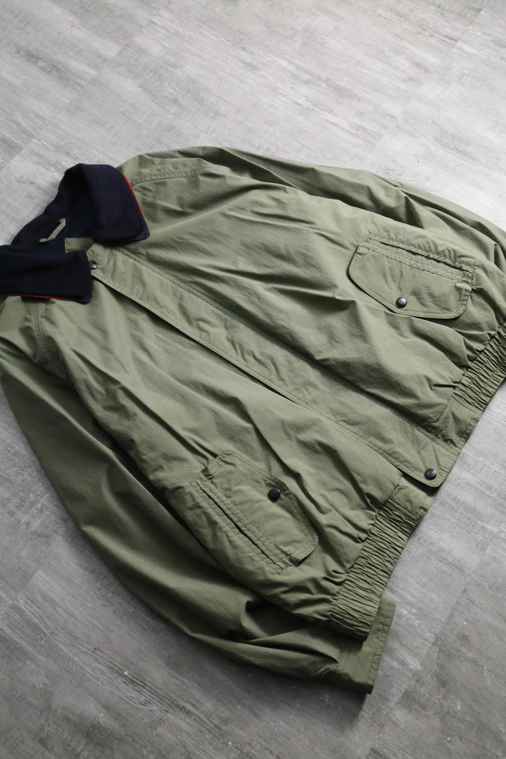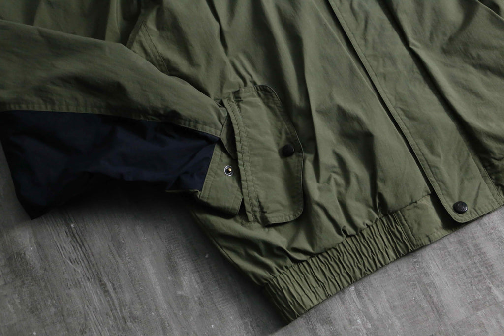 武骨なオリーブをベースに、袖のネイビー切り替えや襟裏の鮮やかなレッドが映える90s全開の好配色に加え、襟元はナイロンとフリースの二重構造、裏地には通気性に優れたメッシュライニングを採用するなど、デザイン、機能性ともに妥協のない作り込みが光ります。シルエットはふっくらとボリューミーなボンバーシルエット。春先に丁度良いナイロンファブリックなことから、春や秋には大活躍が見込めます。