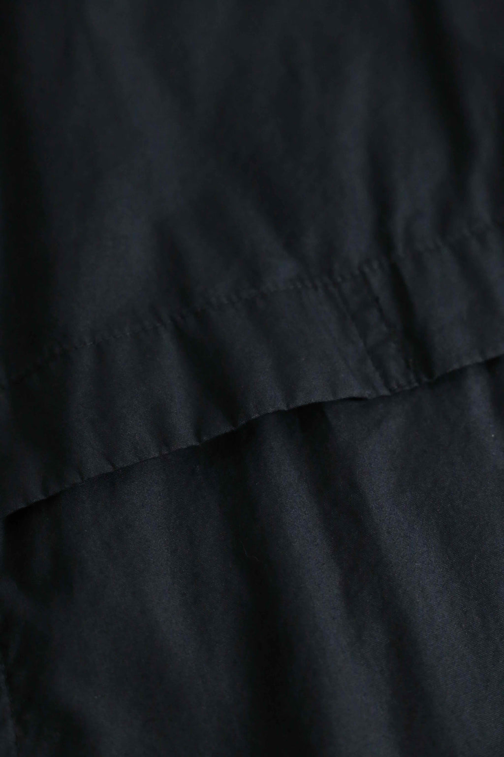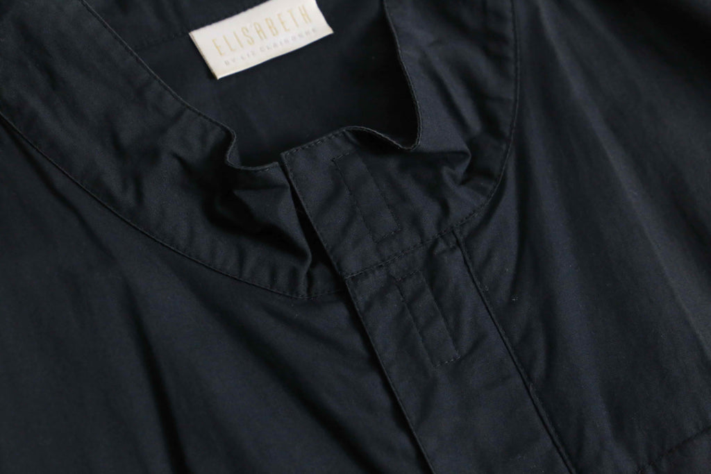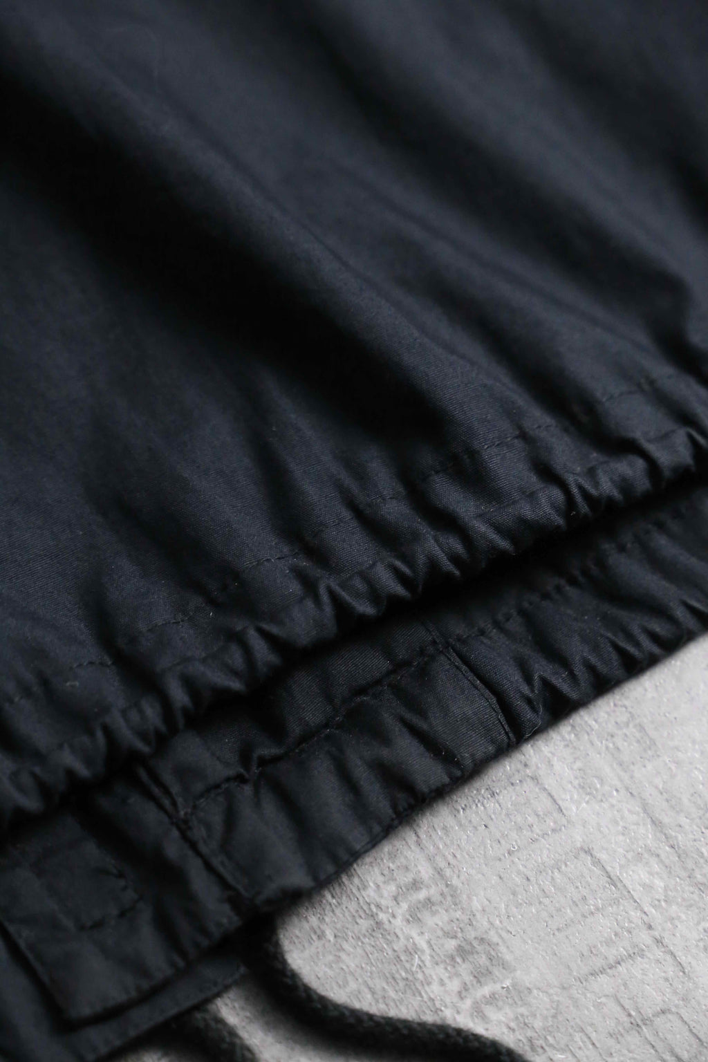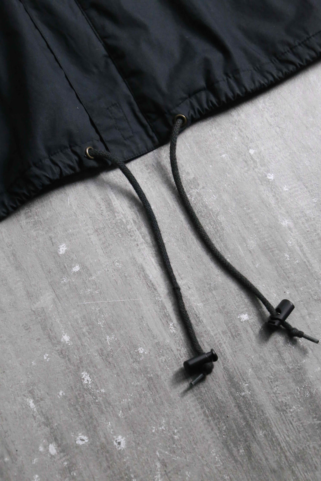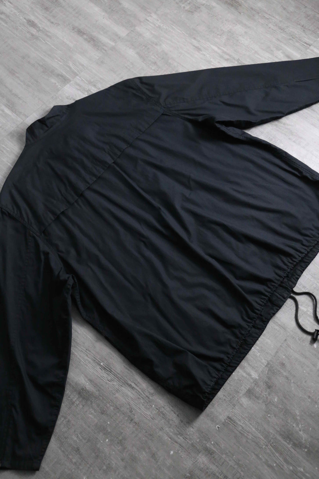 シャリ感のマットな質感のシャツ生地のボディに、立ちの良いスタンドカラーと比翼仕立てのフロントが都会的で洗練された印象。相反して袖口のジッパーによる開閉ギミックや裾のドローコードといったテクニカルな技巧派シャツジャケット。これでいてボタン式ではなくジップの機構なのも珍しいポイントです。