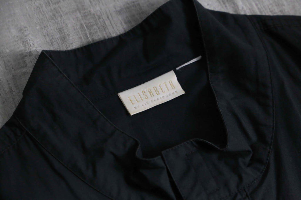 1990年代頃のElisabeth by Liz Claiborneによる、ミニマルかつタクティカルな表情を併せ持つジップアップのシャツジャケット。