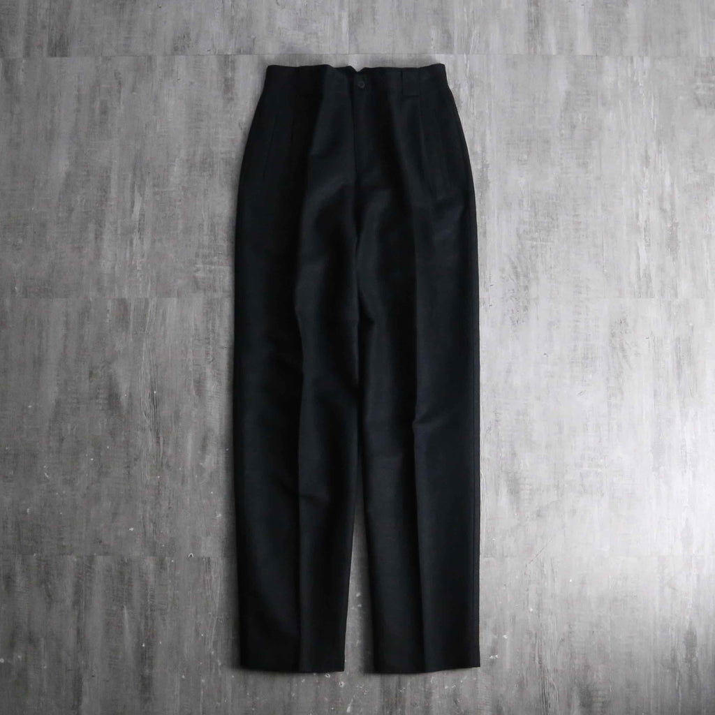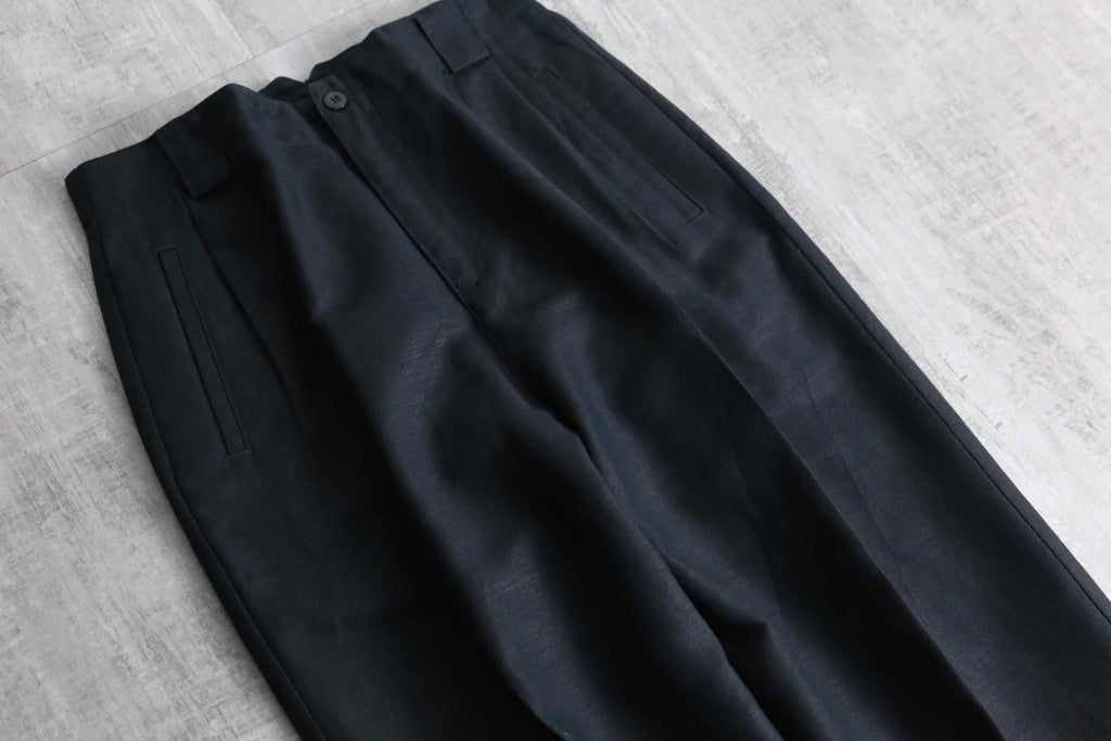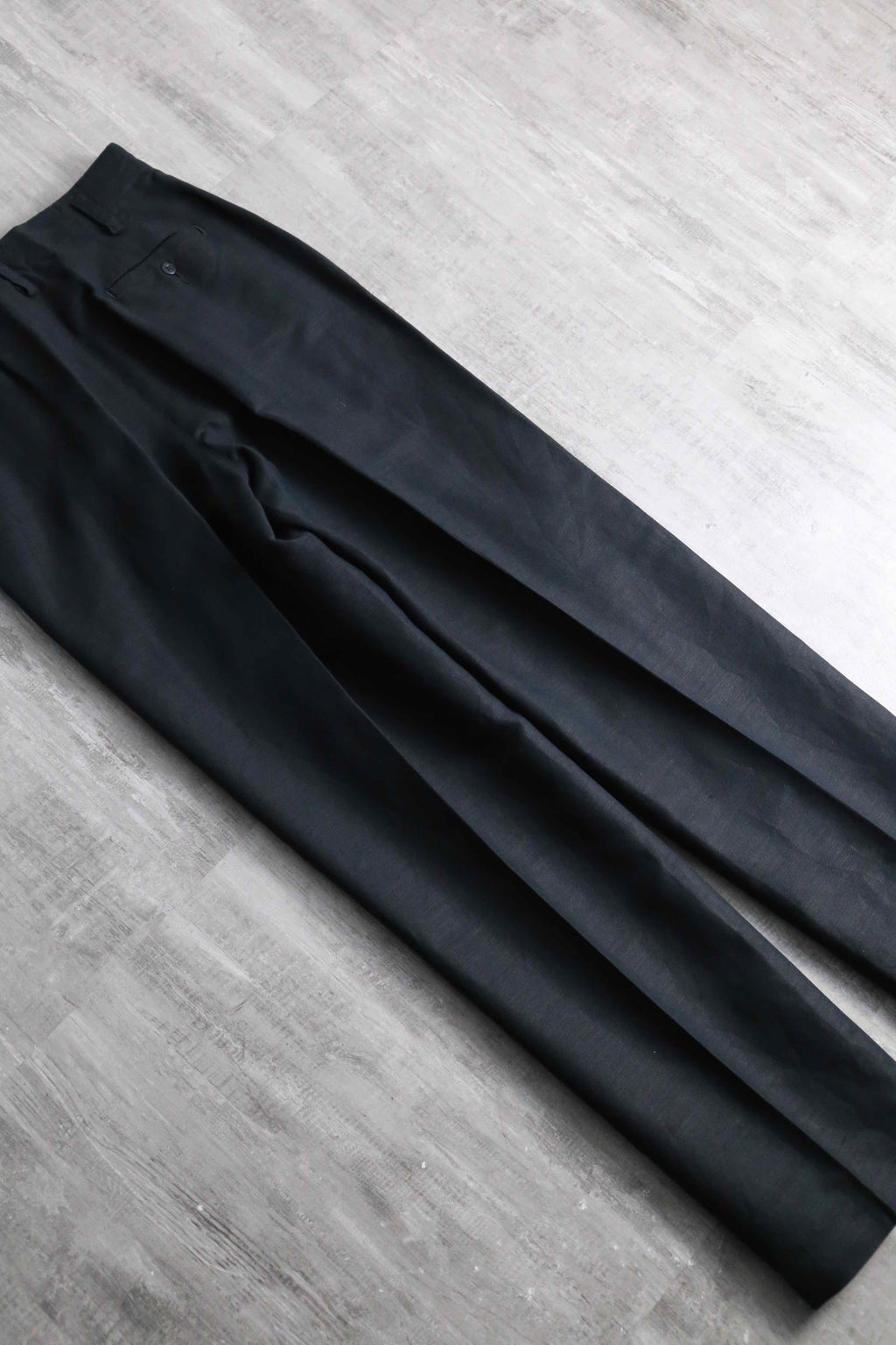 リネン特有の清涼感とコシ、コットンの柔らかな肌触りを兼ね備えた1990年代頃のLiz Claiborne製スラックス。W,L共に30インチほど、サイズだけでいえばメンズ仕様です。股上が深くハイウエストな作り、2タックとセンタークリースも綺麗に入り、中太の洗練された大人なシルエットを演出します。