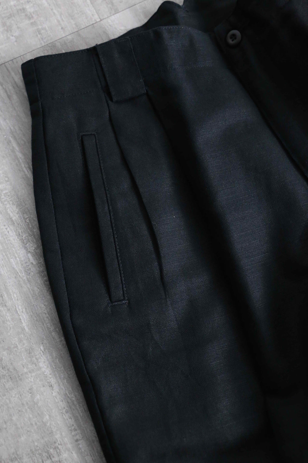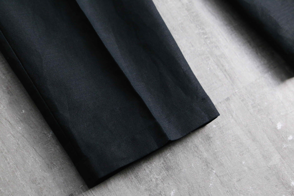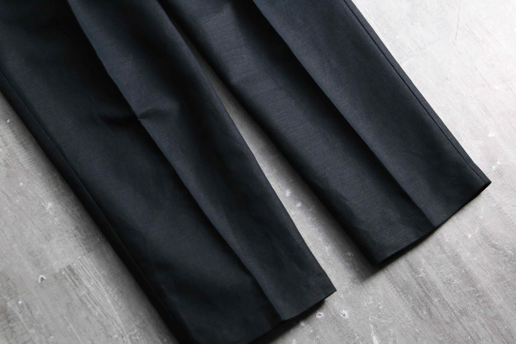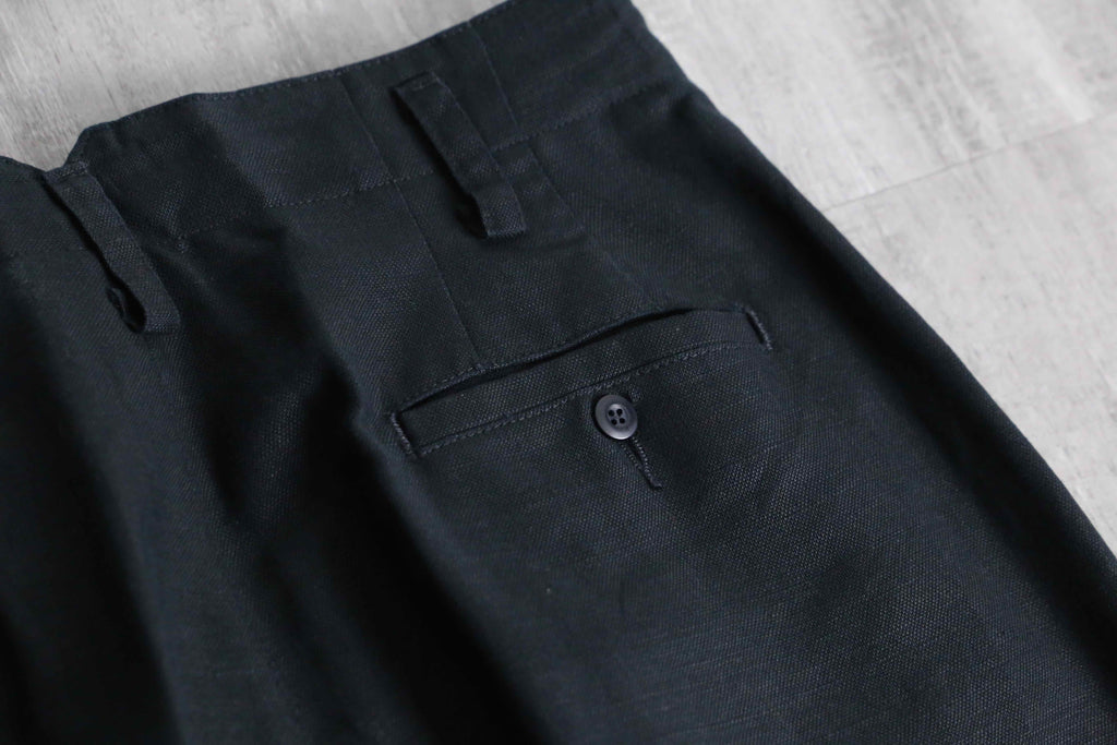 リネン特有の清涼感とコシ、コットンの柔らかな肌触りを兼ね備えた1990年代頃のLiz Claiborne製スラックス。W,L共に30インチほど、サイズだけでいえばメンズ仕様です。股上が深くハイウエストな作り、2タックとセンタークリースも綺麗に入り、中太の洗練された大人なシルエットを演出します。