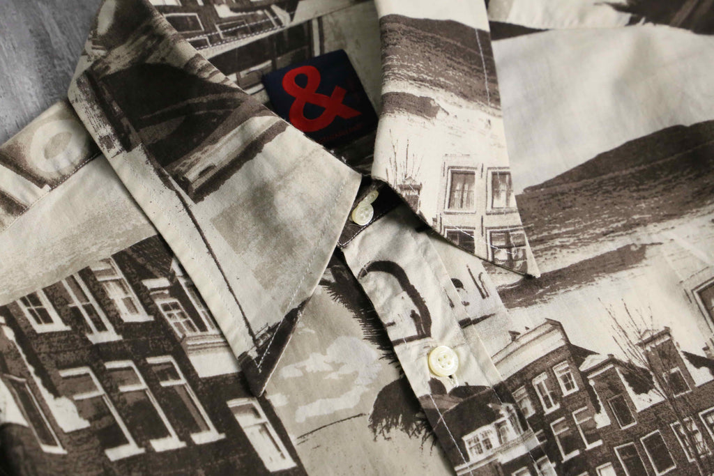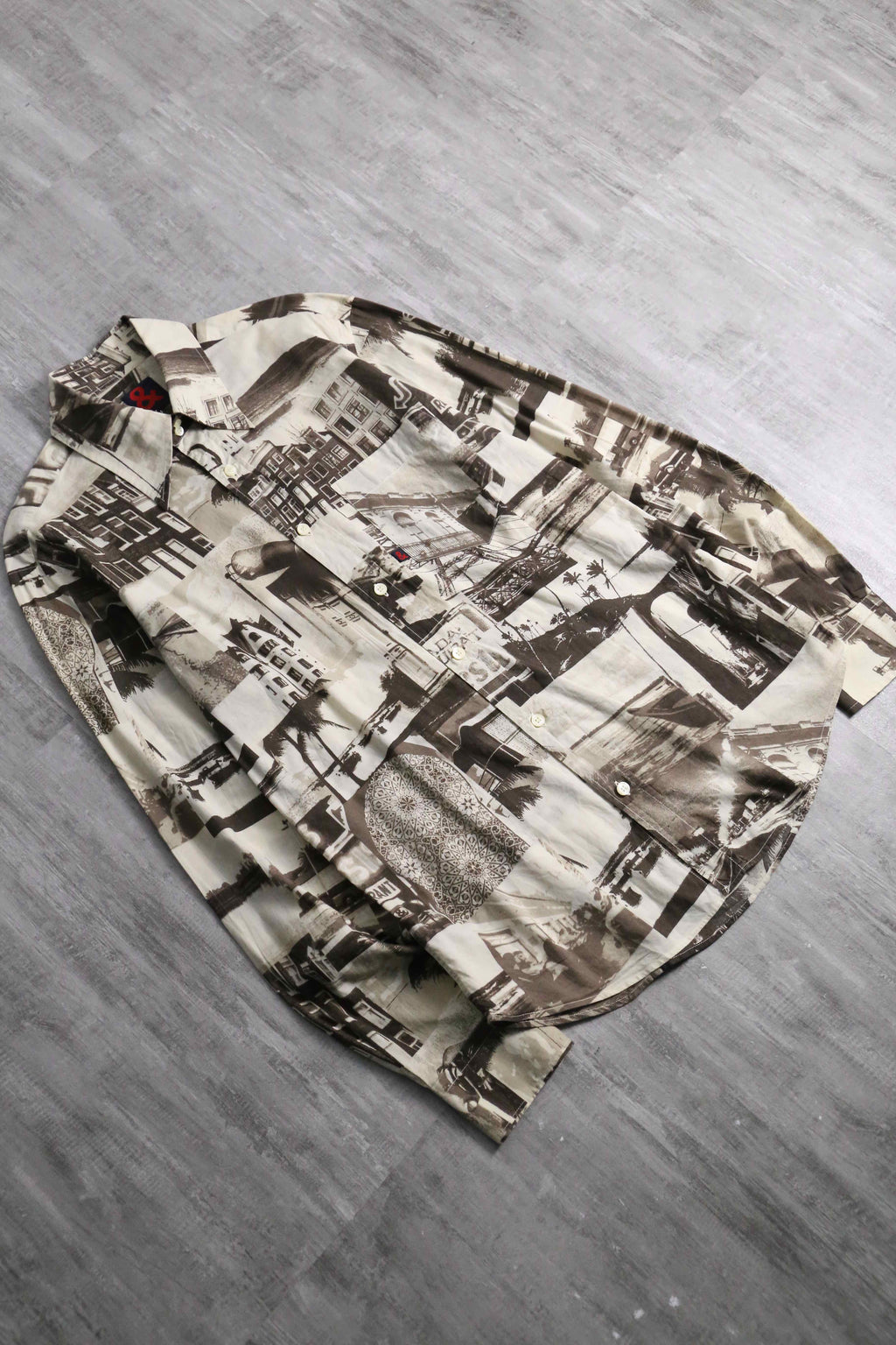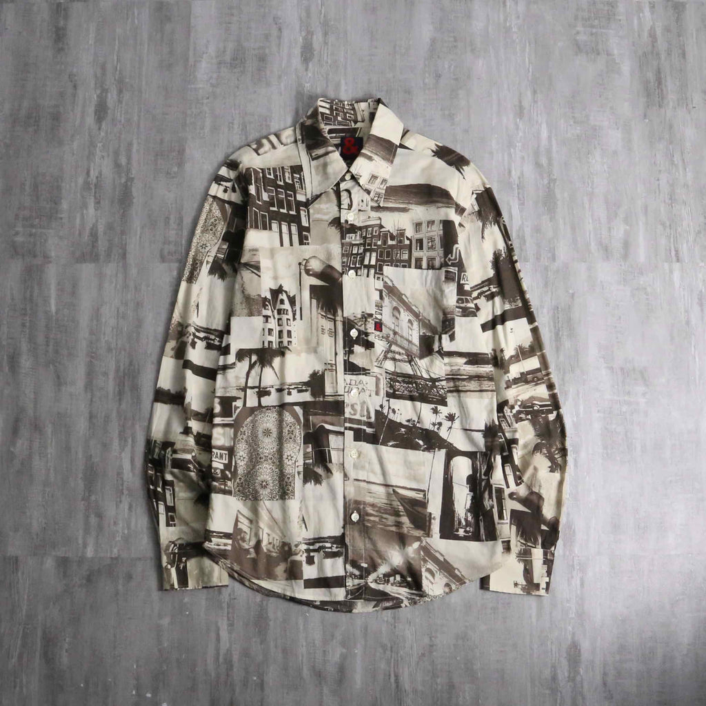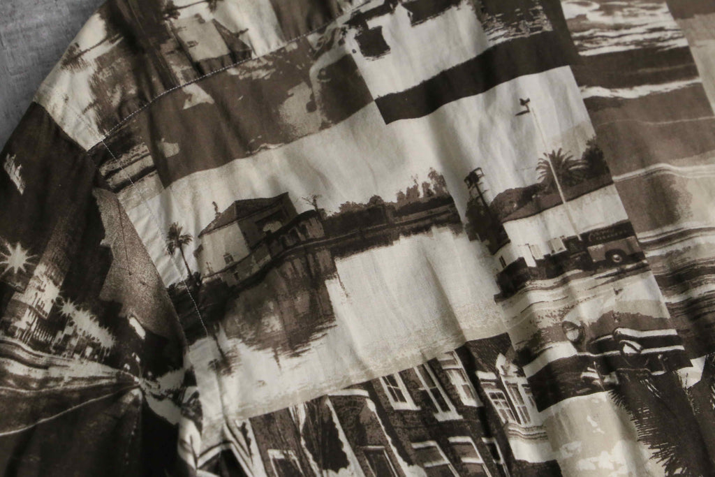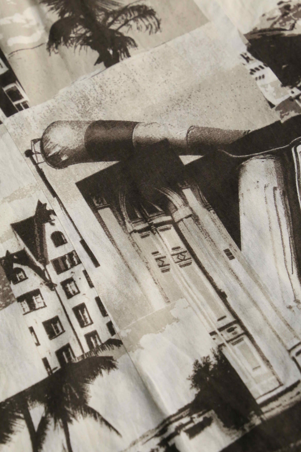 ドルガバのラグジュアリかつセクシーな雰囲気とは打って変わったカジュアルかつアーティスティックな逸品。柔らかく薄手のコットン100%で、通年の活躍が期待できる生地感です。セピア調に映された街並みのデザインはとても叙情的でノスタルジック。儚くも美しいデザインです。