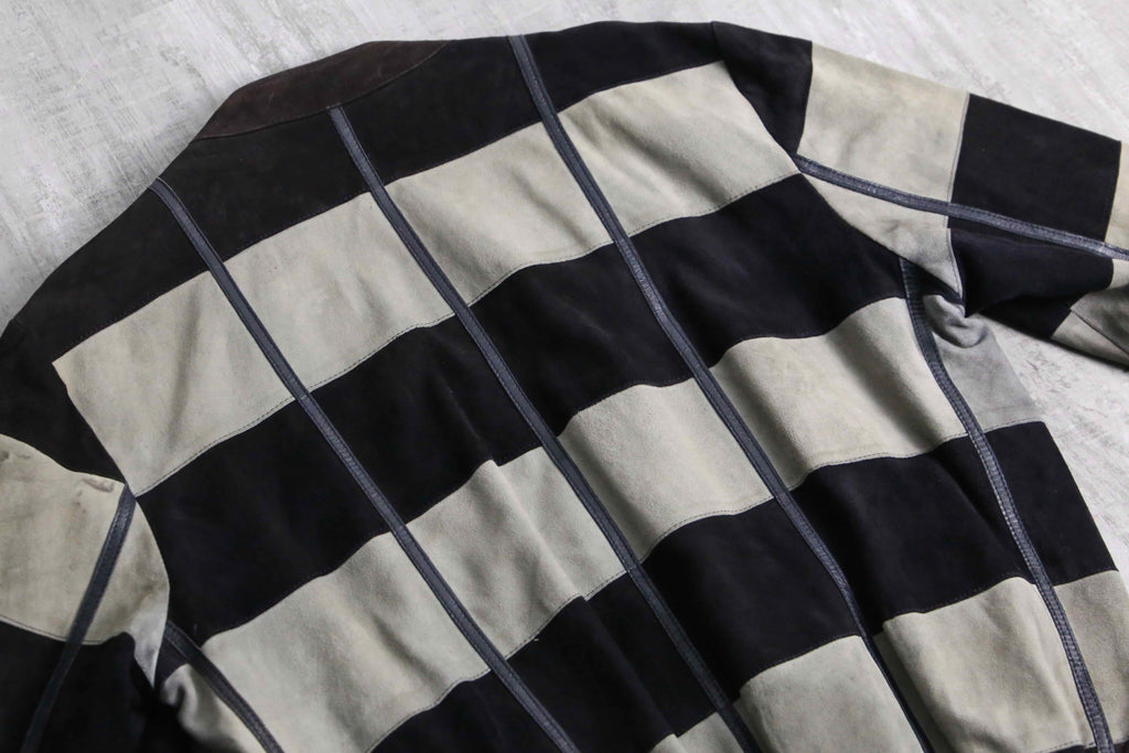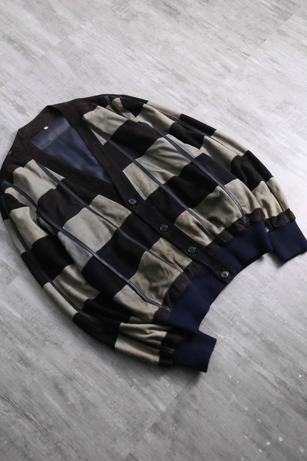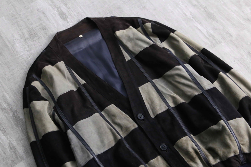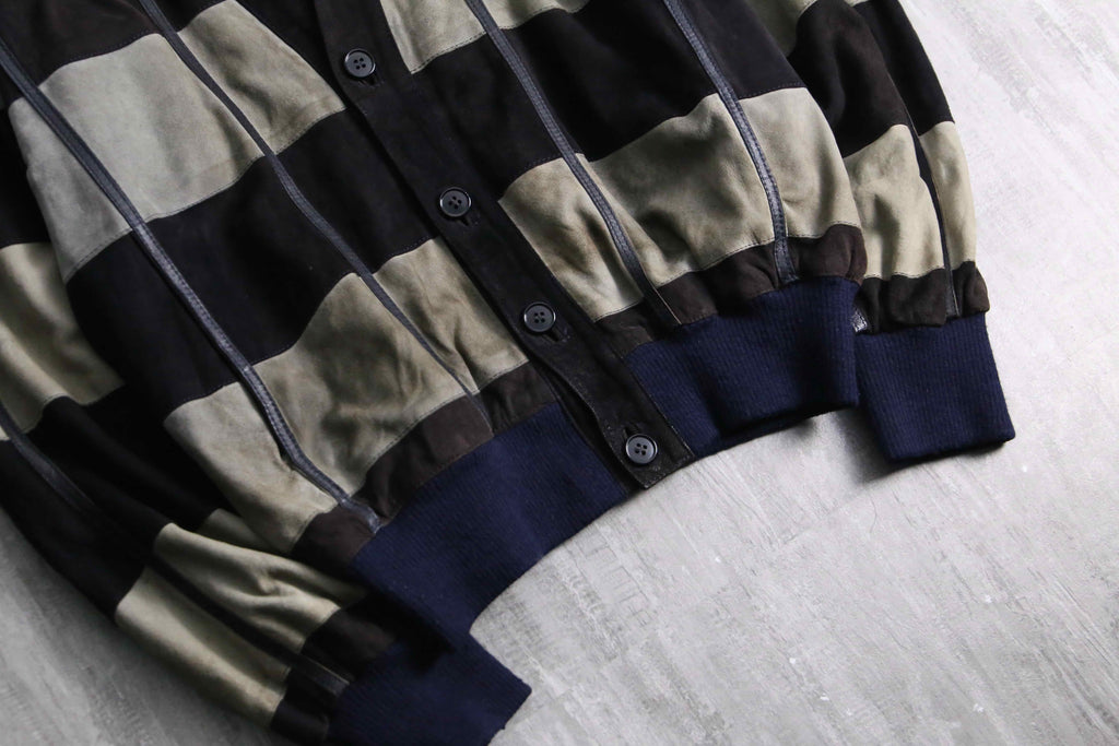 推定1980~90年代頃のイタリアメイドらしきリアルスエードレザーのカーディガン。ユーロ圏らしいデザインの類い稀なる逸品。