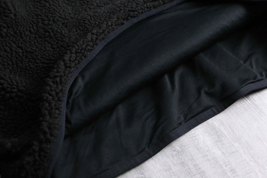裏地は全面メッシュ素材なため透湿性も高く、保温力が高いボアフリースと良い相性。ハーフジップで着脱もしやすく、サイズはL。楽に着回しできるダル着としても優秀かと思います。勿論街着にも是非。