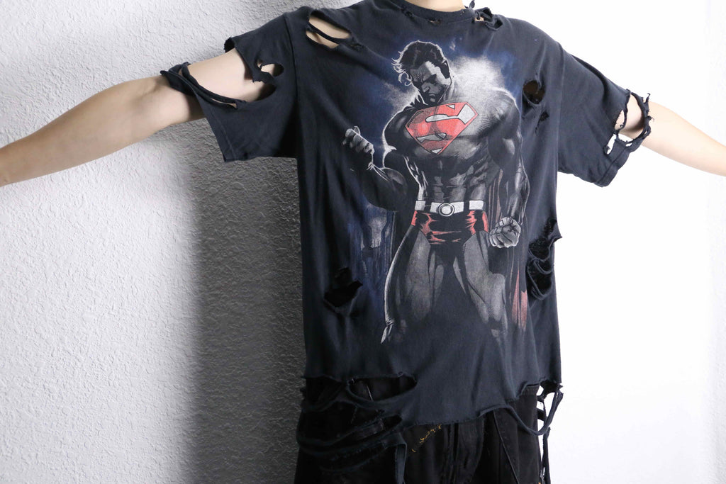 当店自慢のボロTeeより、スーパーマンのデザインとマッチした1着をご紹介。