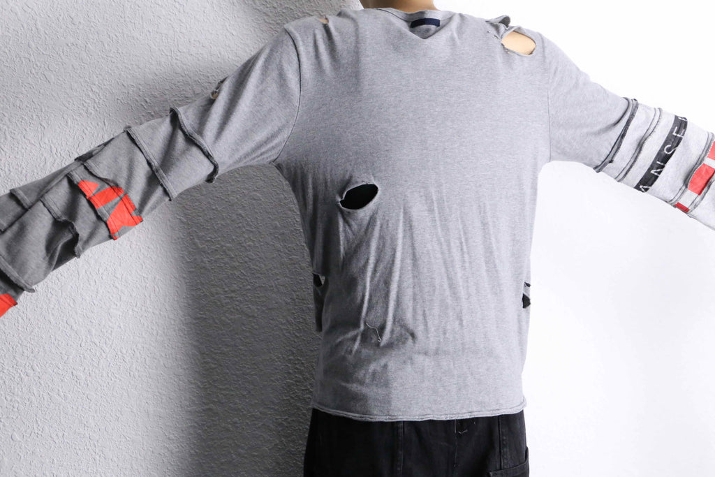 当店で大人気のリメイクロングスリーブTeeに大胆なボロが施された一着が入荷。