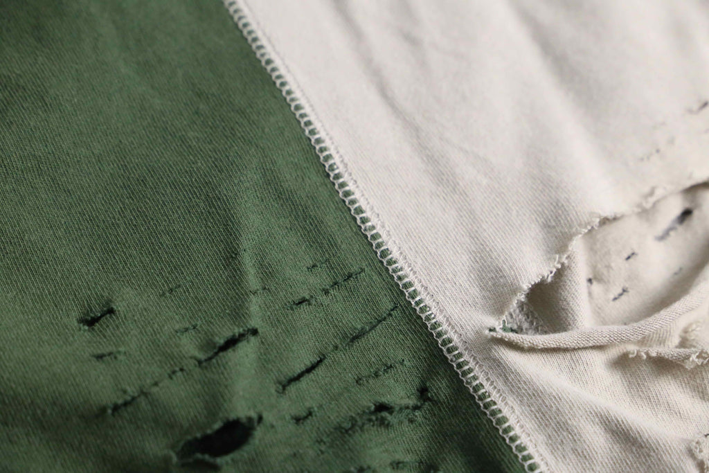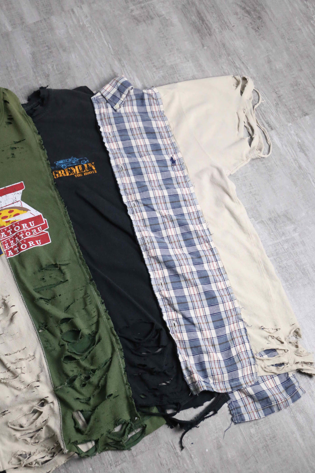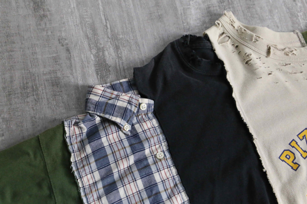 4種のトップスをドッキングしたインパクト絶大なリメイクTシャツが入荷。