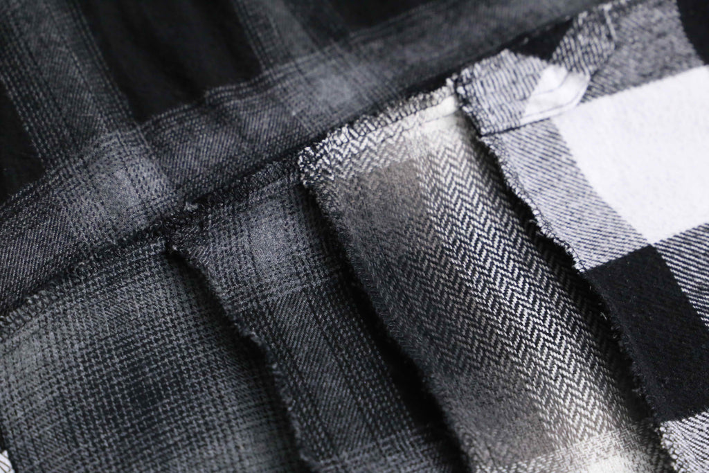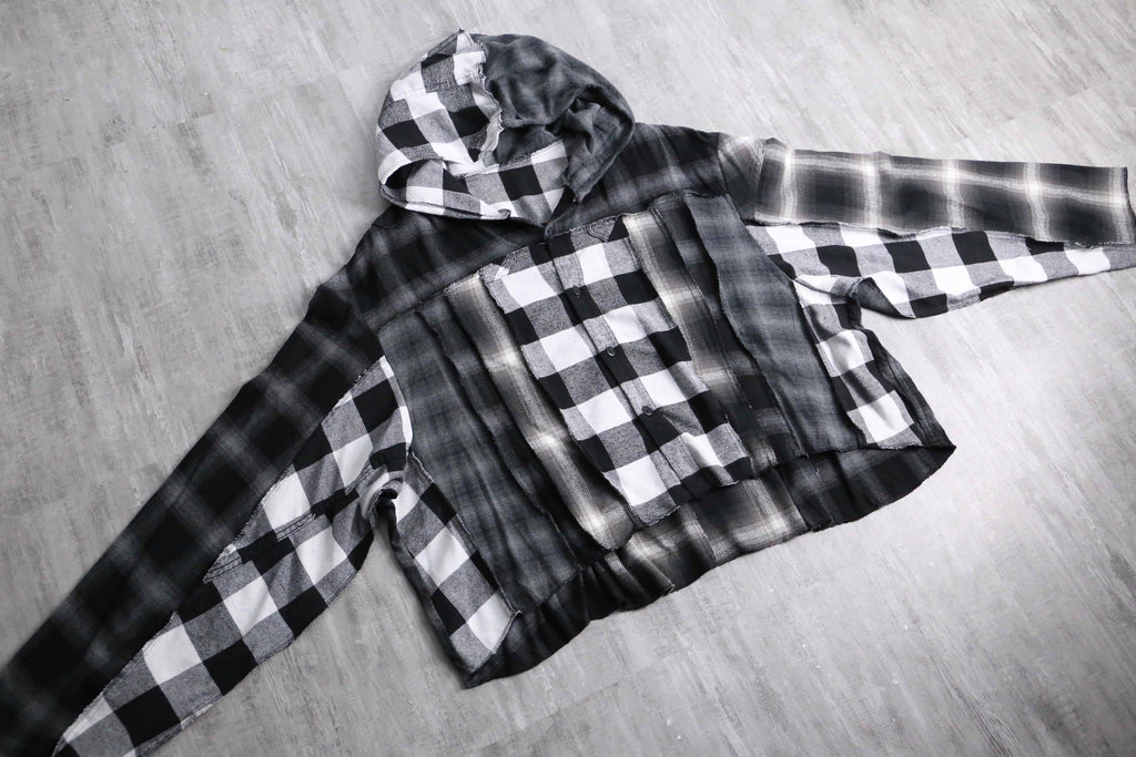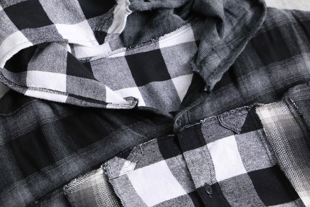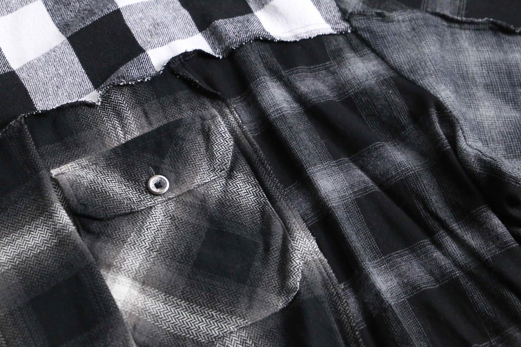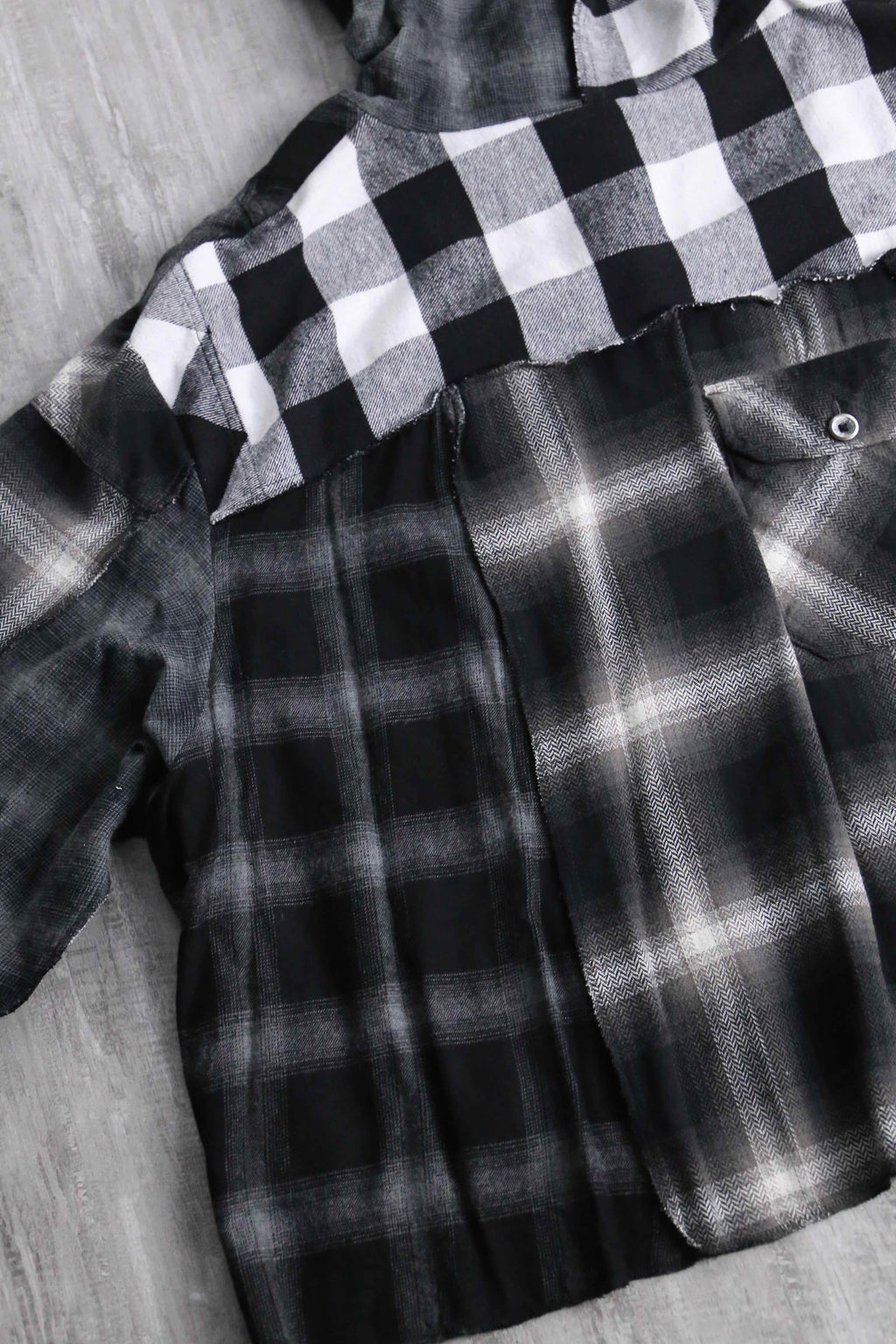 当店自慢のリメイクシリーズから、モノクロのドッキングシャツフーディーの入荷。