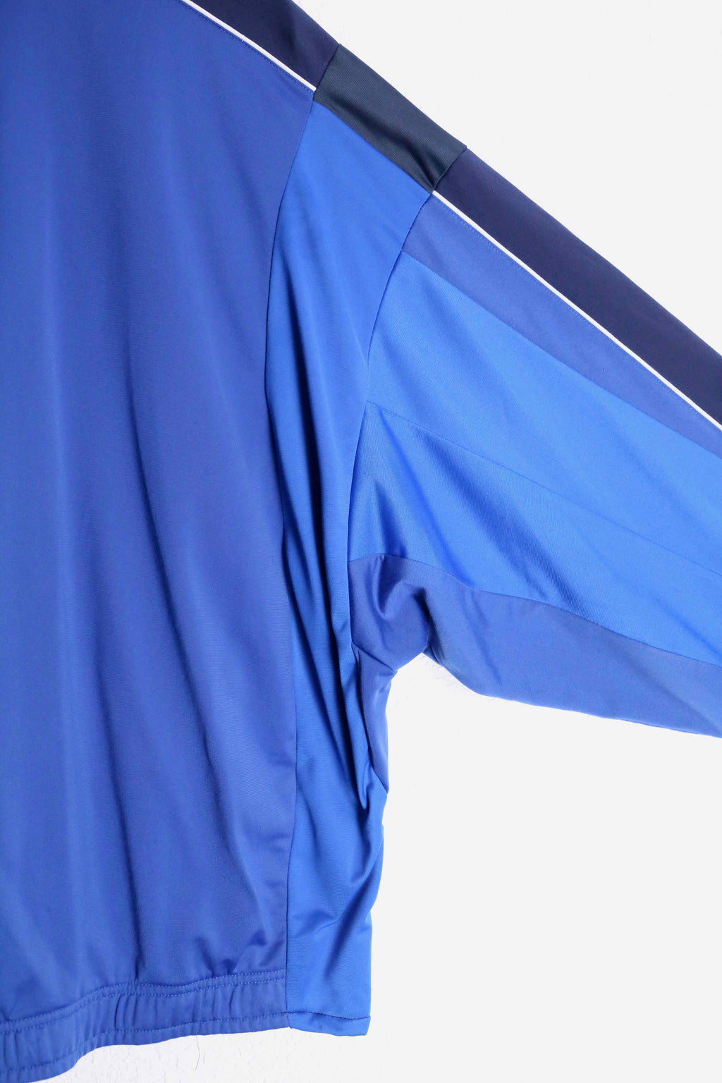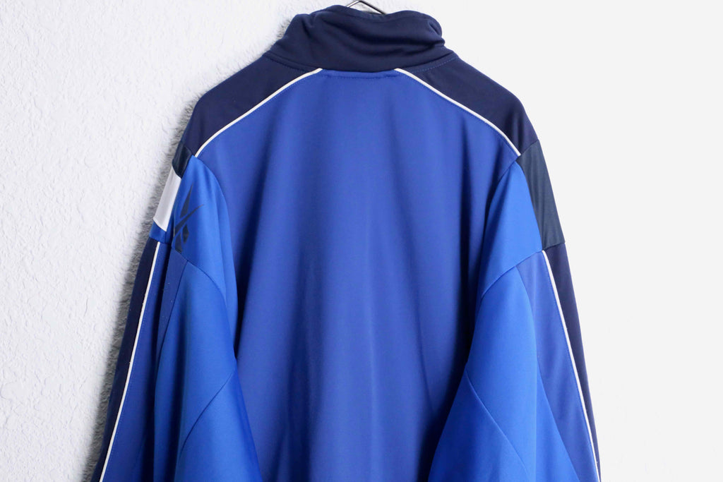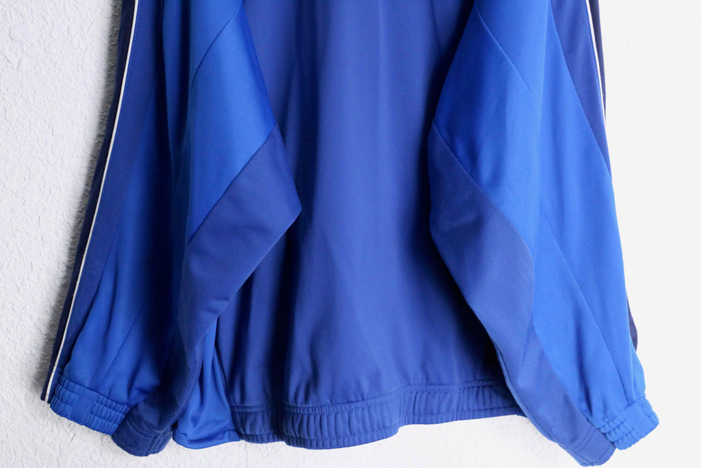 異なる種類の青のトラックジャケットをかき集め、分解しドッキングした一枚。袖部分に濃いめの青を配置することで落ち着いた印象を与えてデイリーに使いやすく、どんな層にも幅広く着用頂けます。