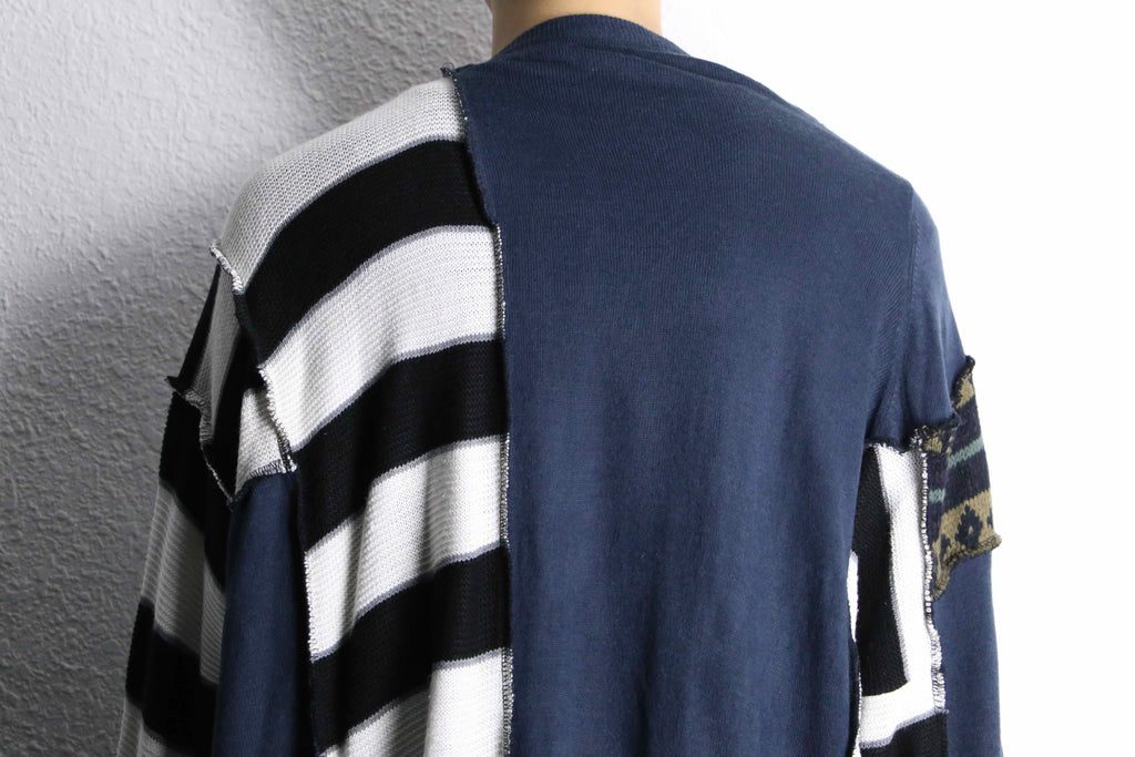 遊び心たっぷりのスノーマン柄ニットと、片側ストライプを大胆に組み合わせたこの時期にピッタリのリメイクニットカーディガンがオンラインに入荷。
