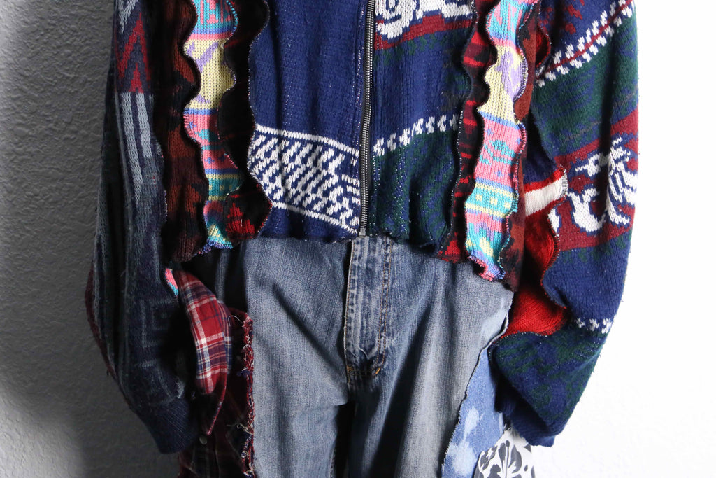 さまざまなパターンを組み合わせたミックスデザインで、1枚でコーデが完成する主役級アイテムです。