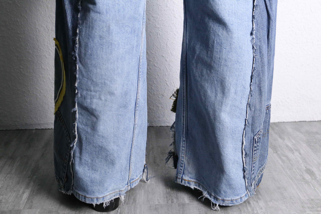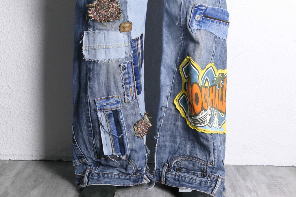 遊び心たっぷりの異素材パッチワークを大胆に組み合わせた、リメイクワイドデニムがオンラインに入荷。