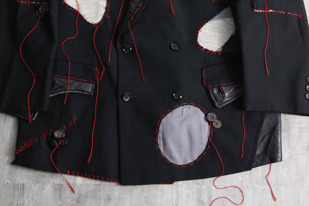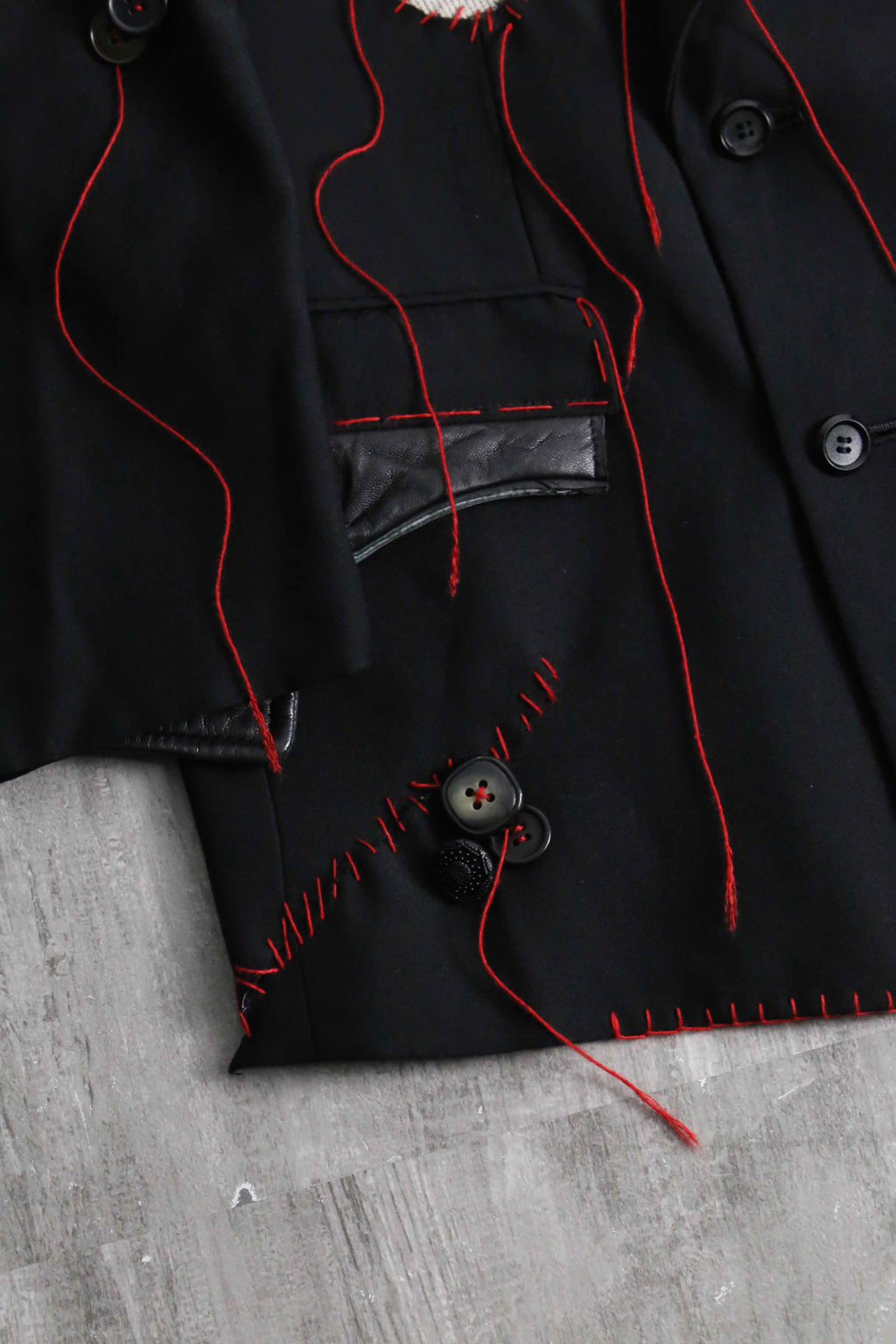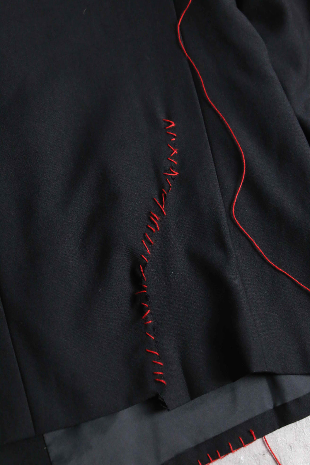 赤糸によるハンドステッチを加えることで、無機質になりがちなジャケットにリメイクならではの温度感を与えています。