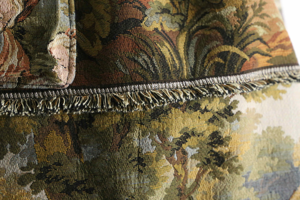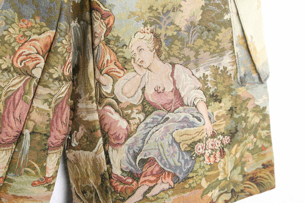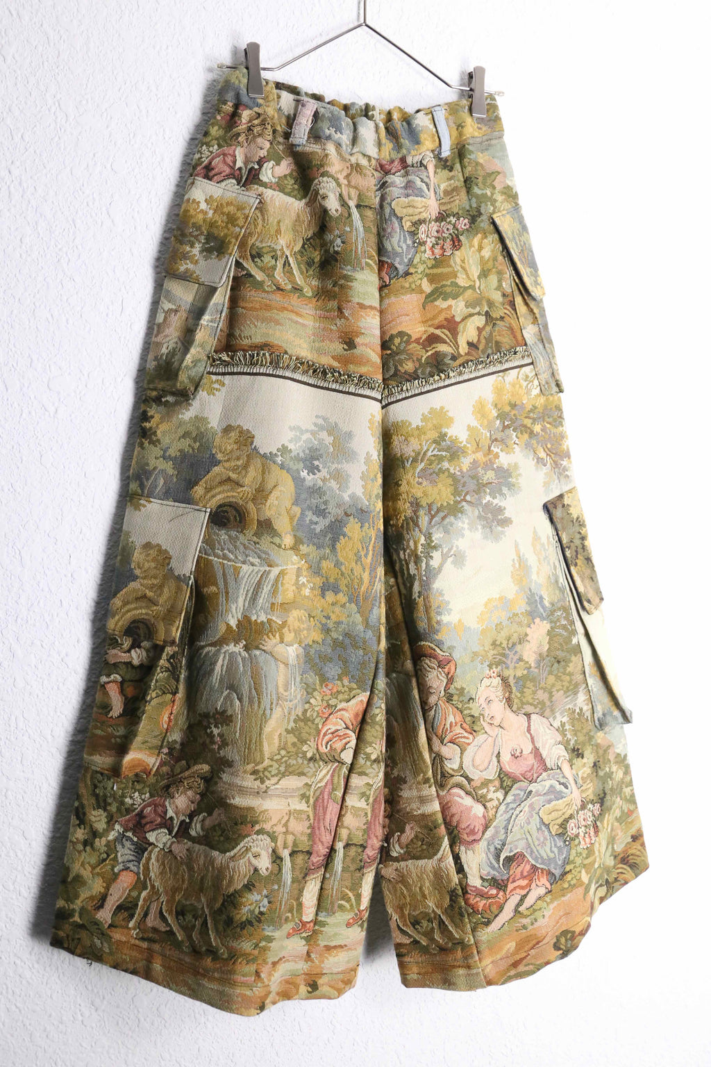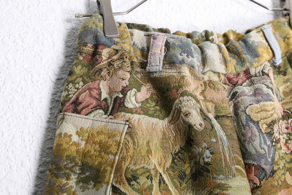 ヴィンテージのラグを使用し、高級感を演出しますが、ラグのデザインや配色により、ポップなテイストも表現でき、二面性を持ち合わせている万能なアイテム。股上なども大きく制作されていたり、ベルトループも付属していることで幅広い方に着用して頂けるかと思います。