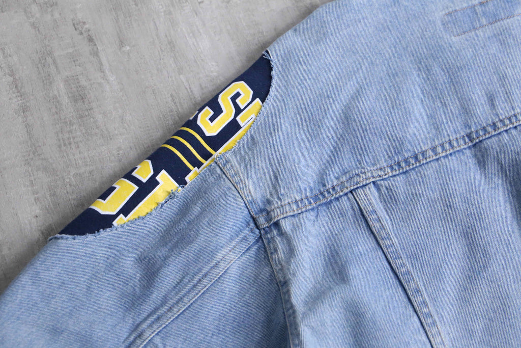 デニムジャケットとスウェット素材を組み合わせて作った存在感抜群のリメイクジャケットがオンラインに入荷。