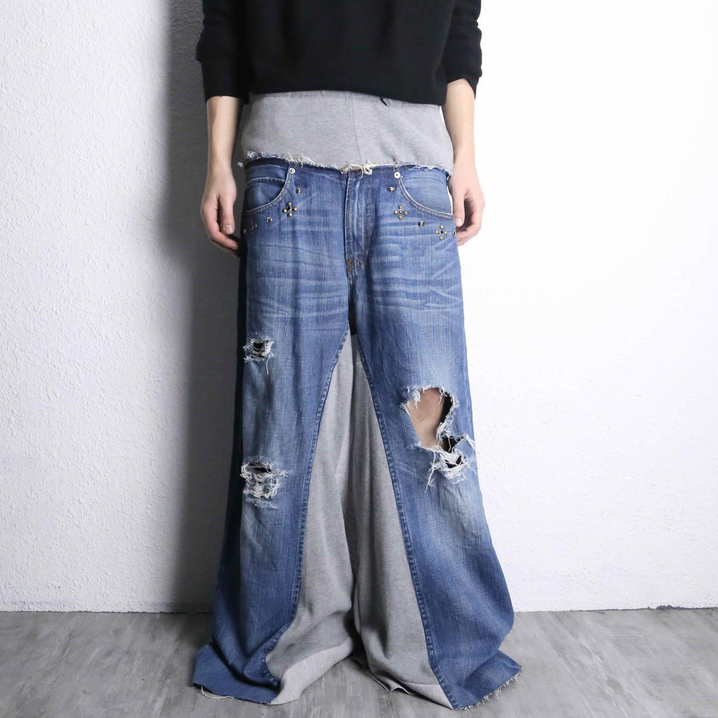 "Re:make" sweat docking flare denim