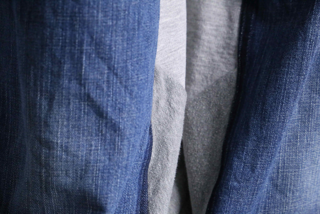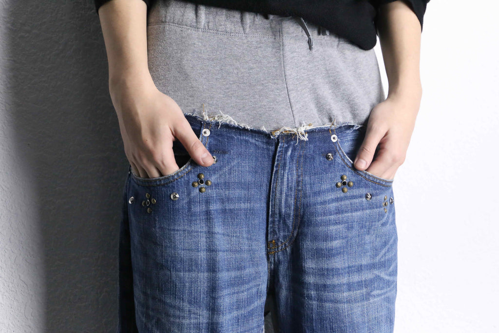 スウェットとデニムがドッキングされたリメイクならではのデザイン、シルエットが秀逸な一枚が入荷。