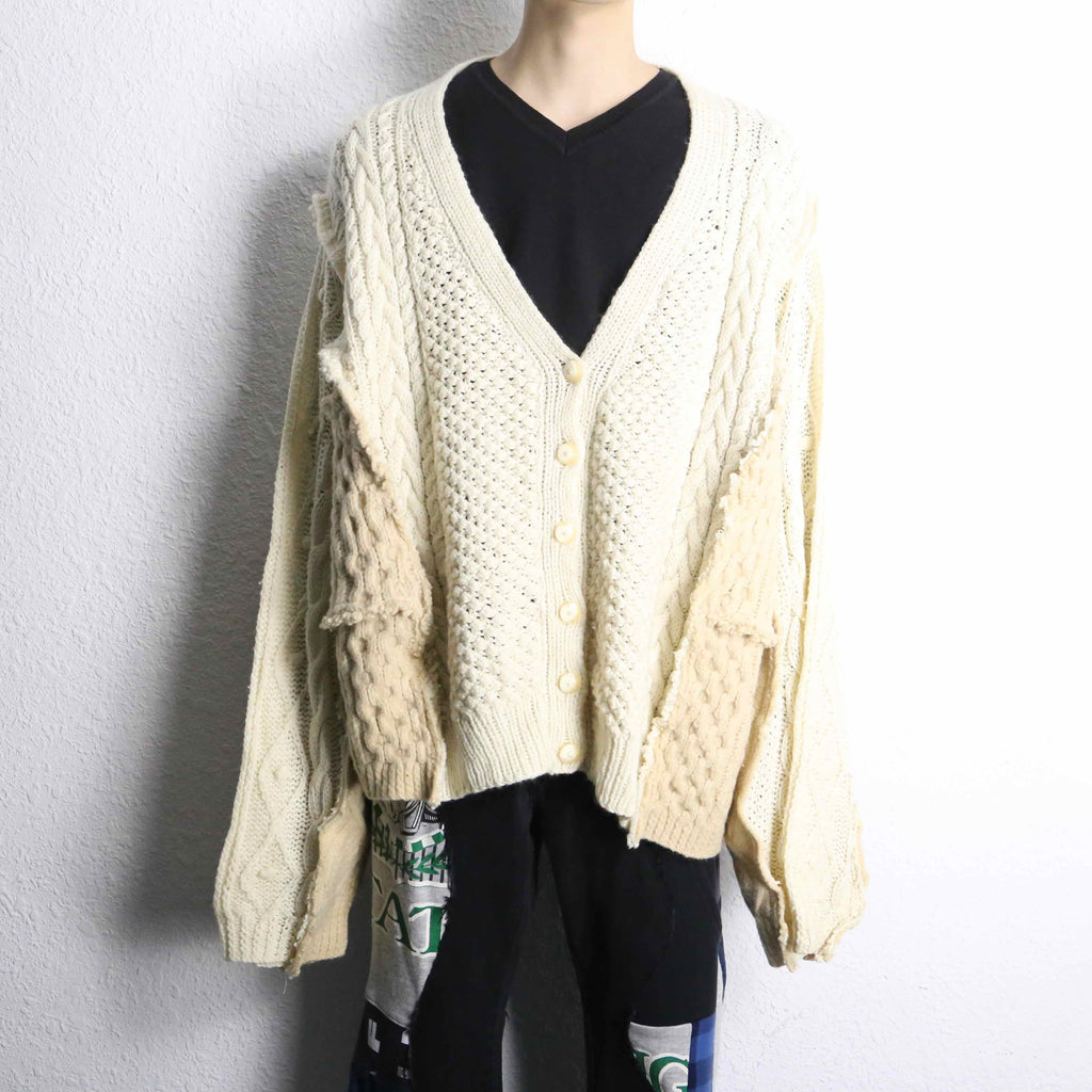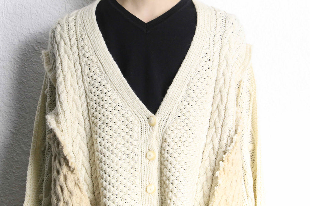 異なる表情のニットを丁寧につなぎ合わせた、Re:Reらしいリメイクカーディガンを入荷。