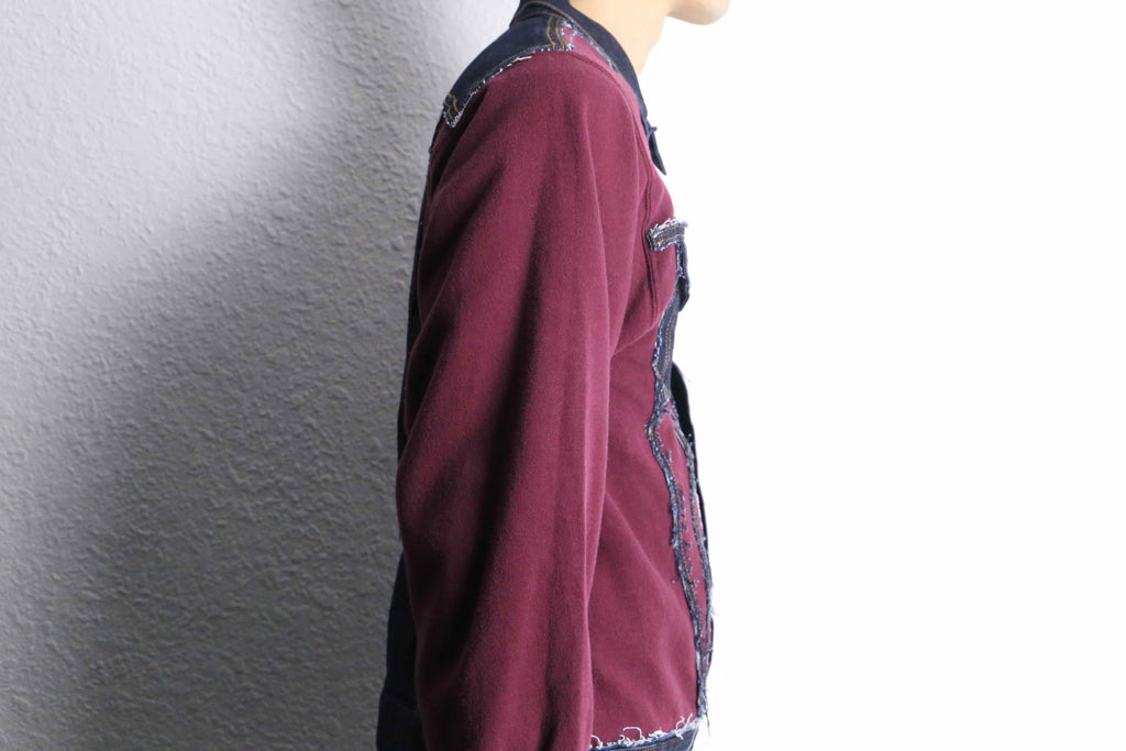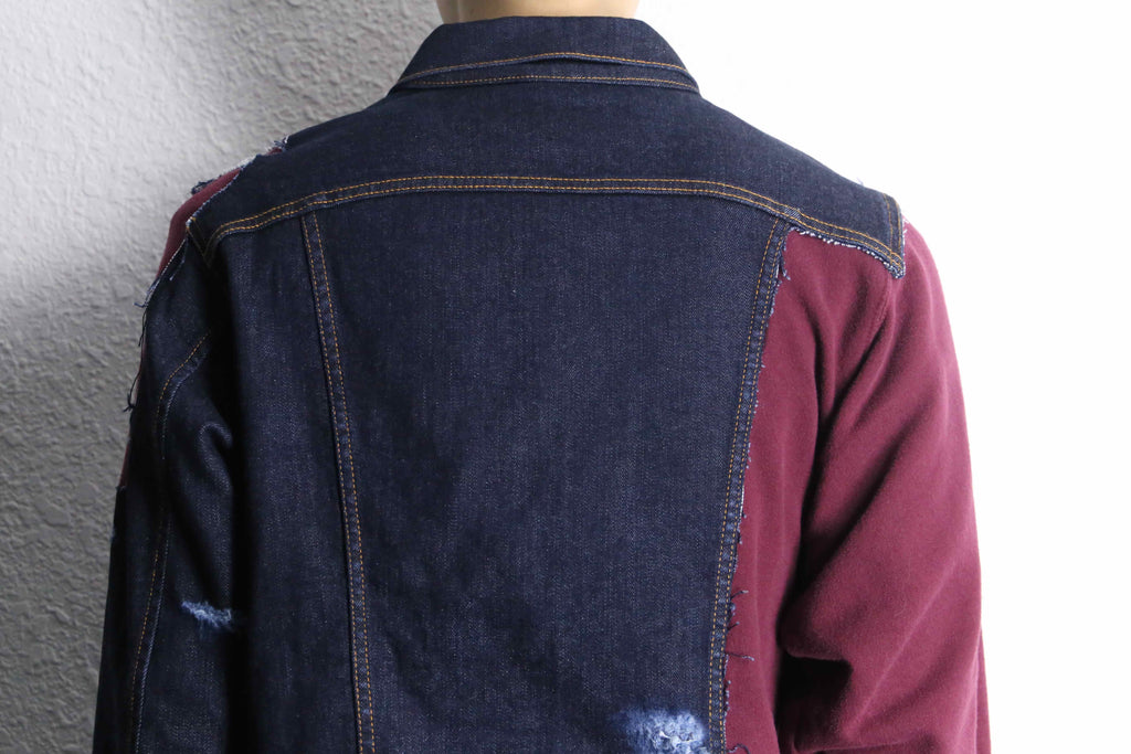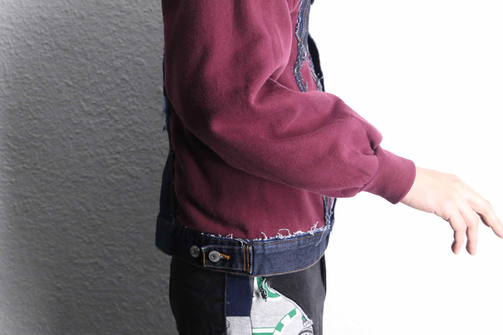デニムジャケットとスウェット素材を組み合わせて作った存在感抜群のリメイクジャケットがオンラインに入荷。