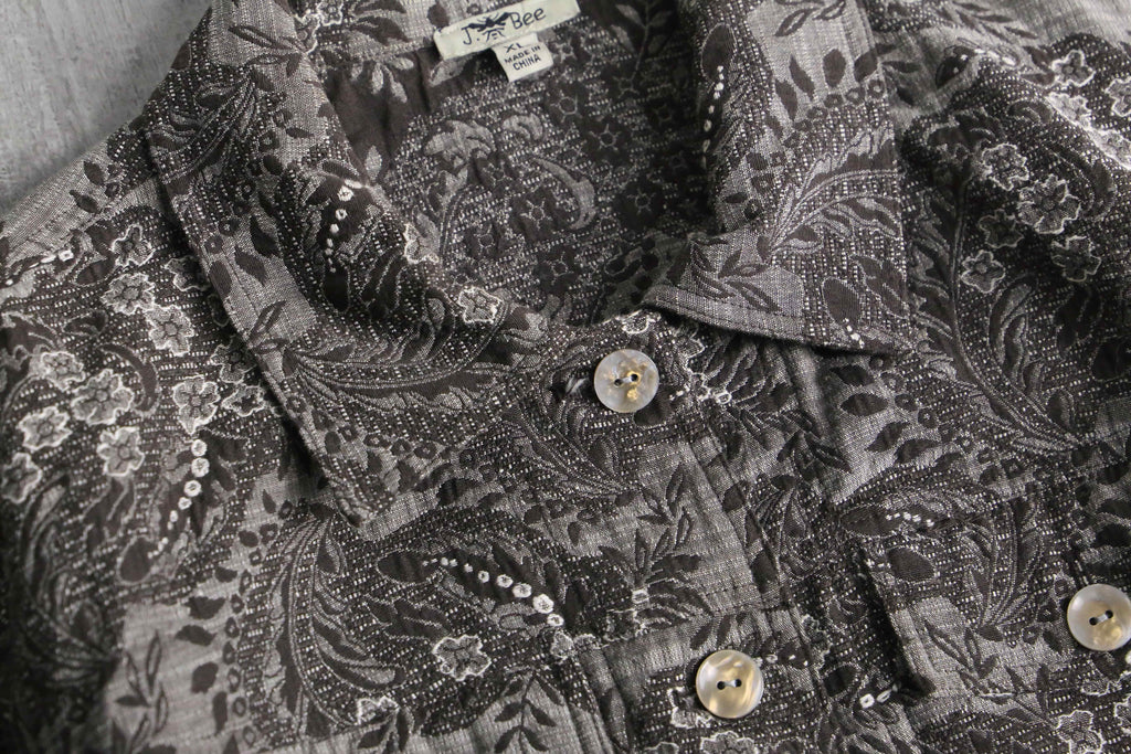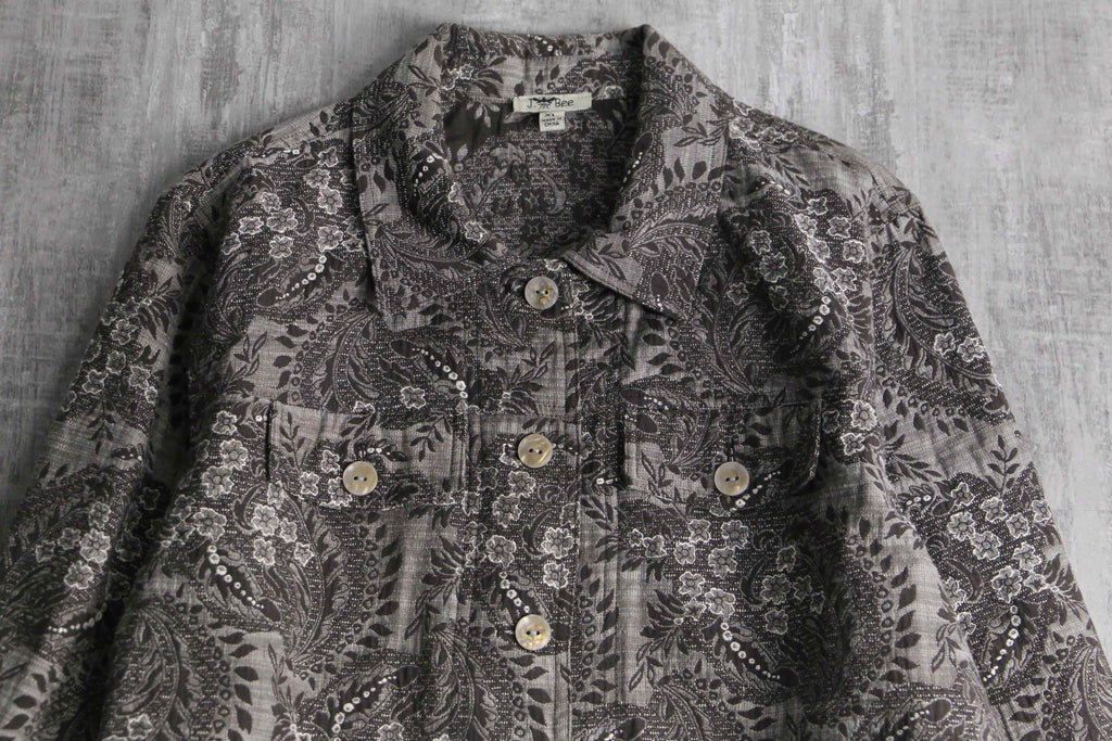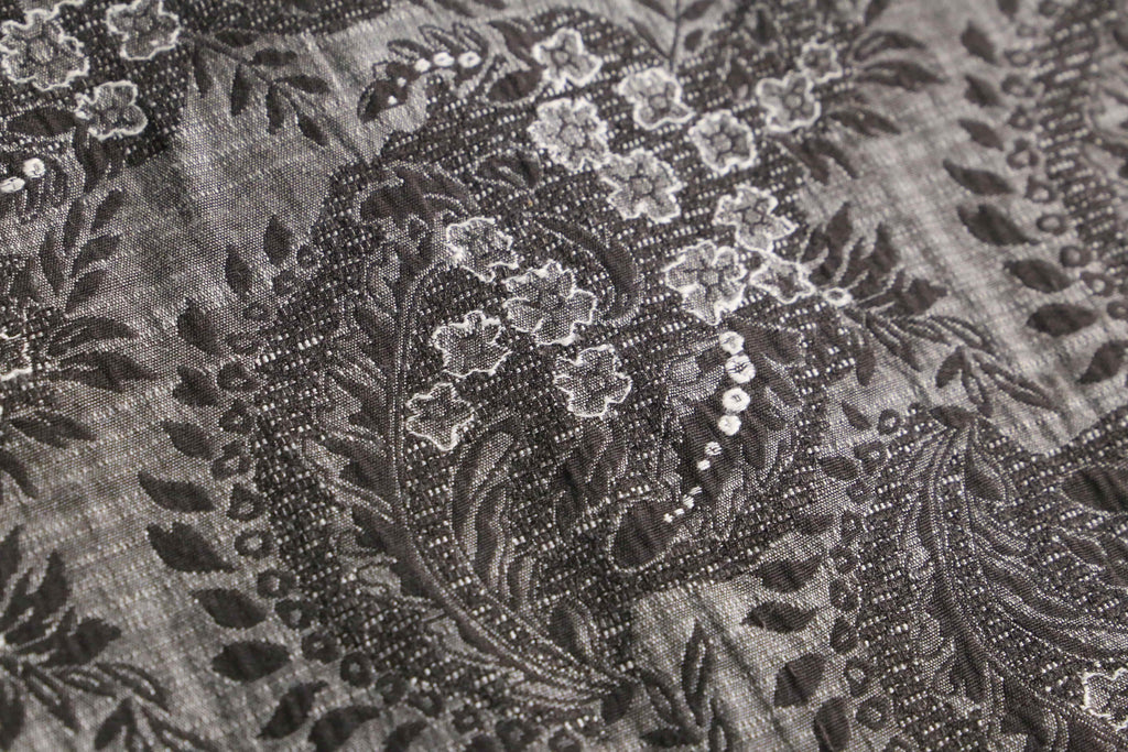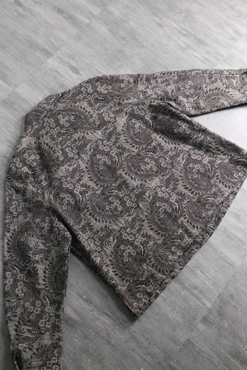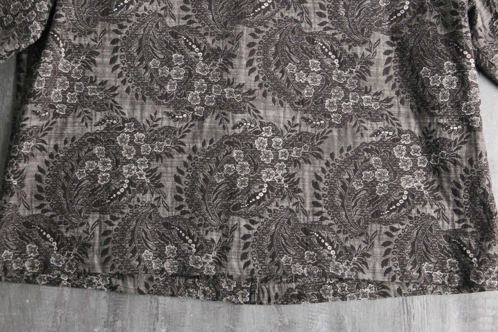 ジャガード織特有のグラデーションでペイズリーと花柄を描いたトラッカータイプとなります。サイドスリットが小さく入ったボックスシルエットで、ざっくりと羽織りやすい1着。艶のあるラグジュアリーなボタンもポイントです。