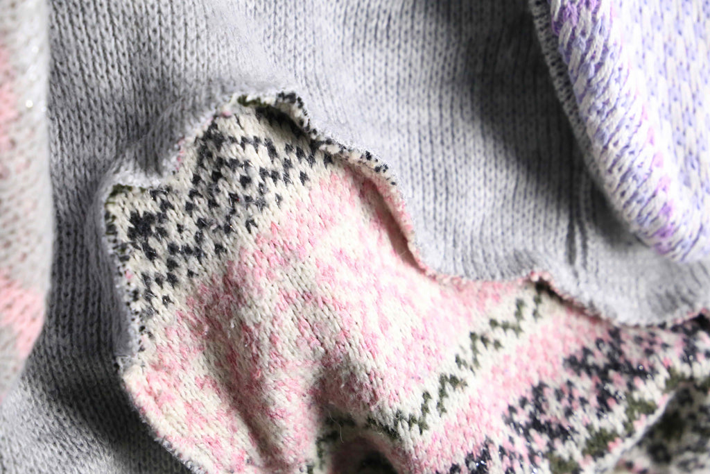 すべて異なるニットを使用しているため、同じものは二度と作れない特別なアイテム。一点物ならではの個性をぜひ楽しんでください。