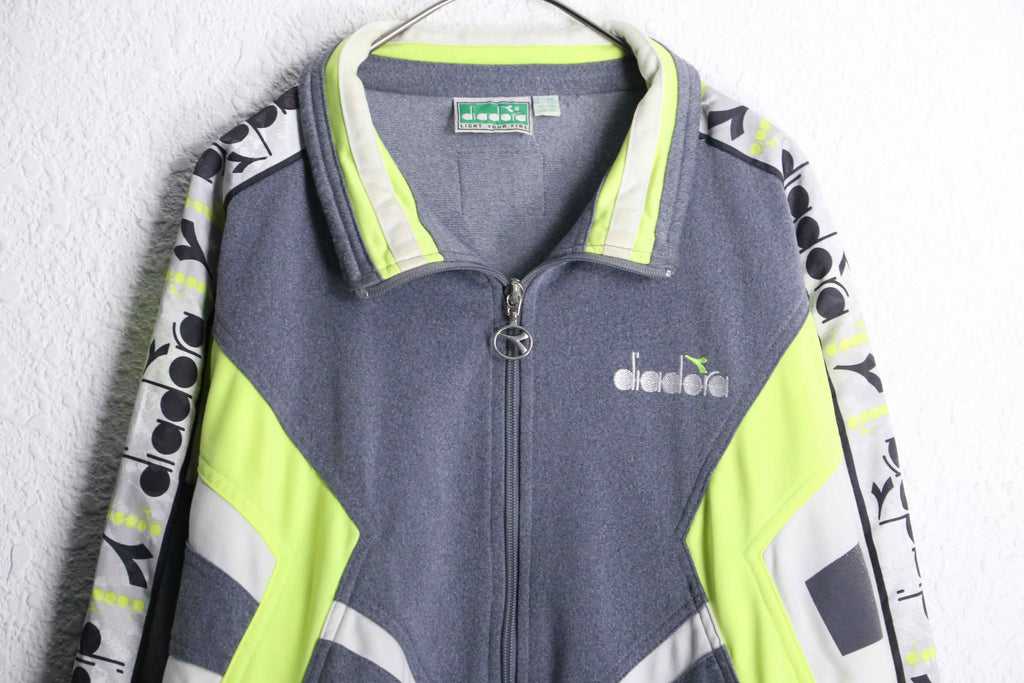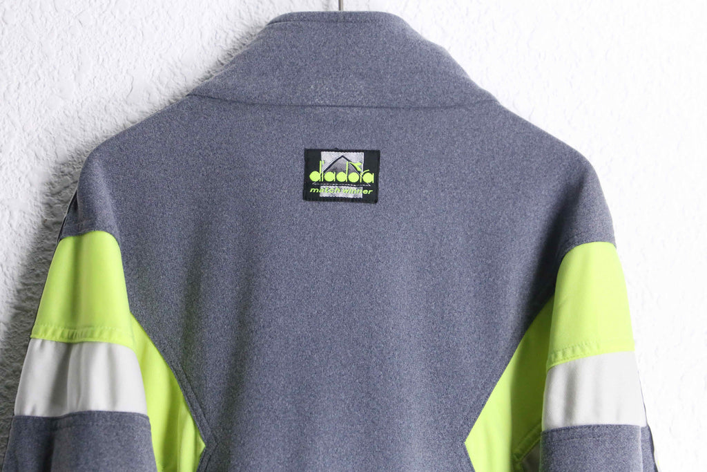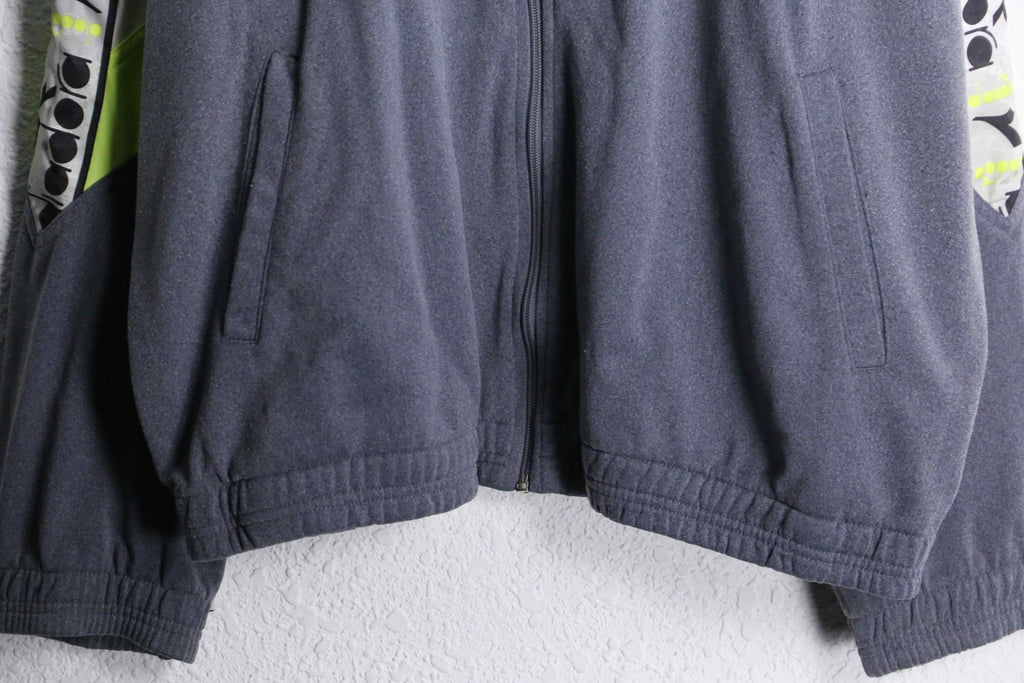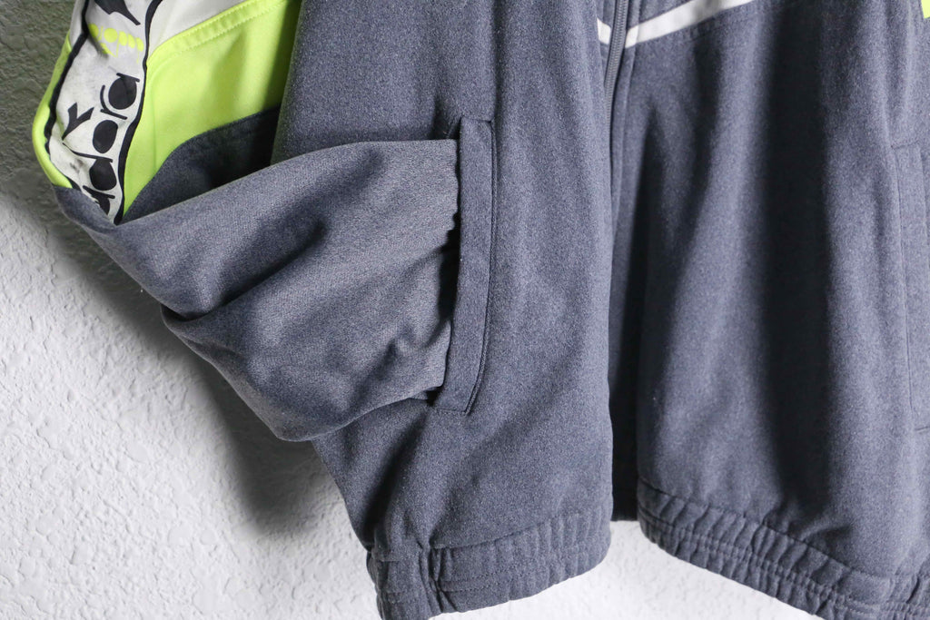 グレーをベースに、ネオンイエローの切り替えが目を引くトラックジャケットがオンラインに入荷。