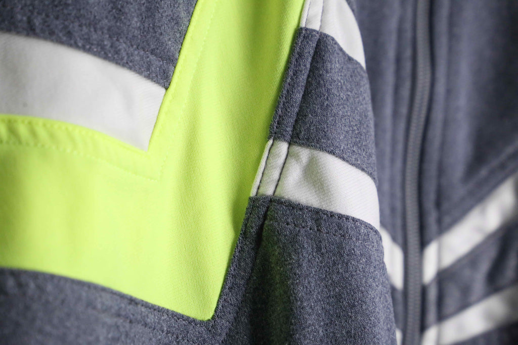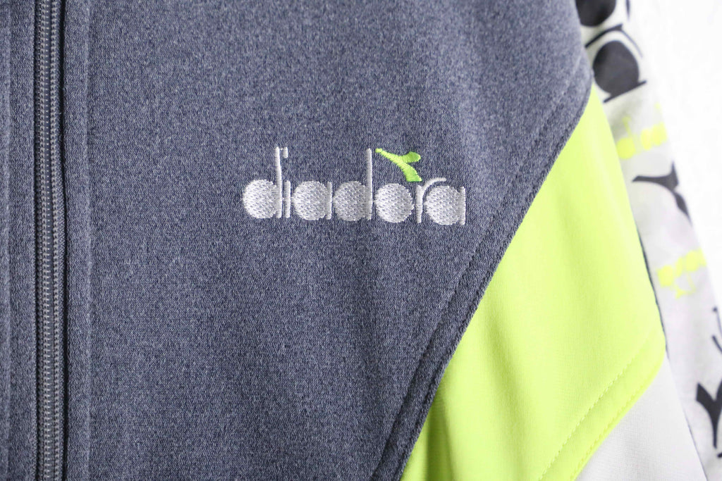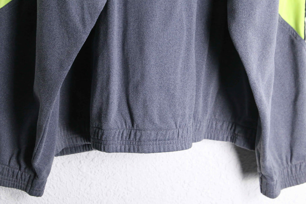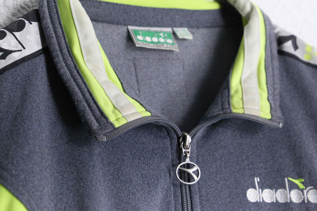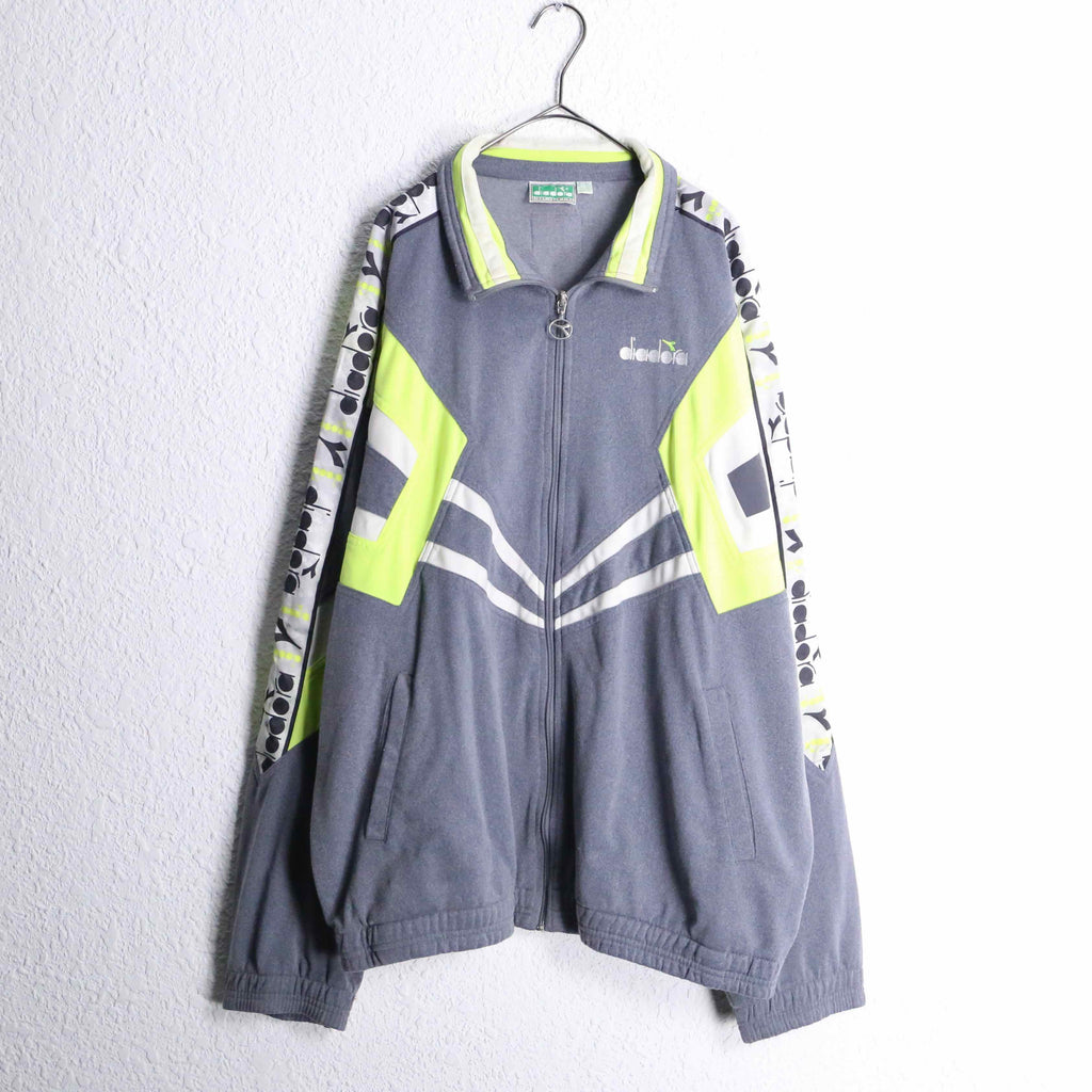 グレーをベースに、ネオンイエローの切り替えが目を引くトラックジャケットがオンラインに入荷。