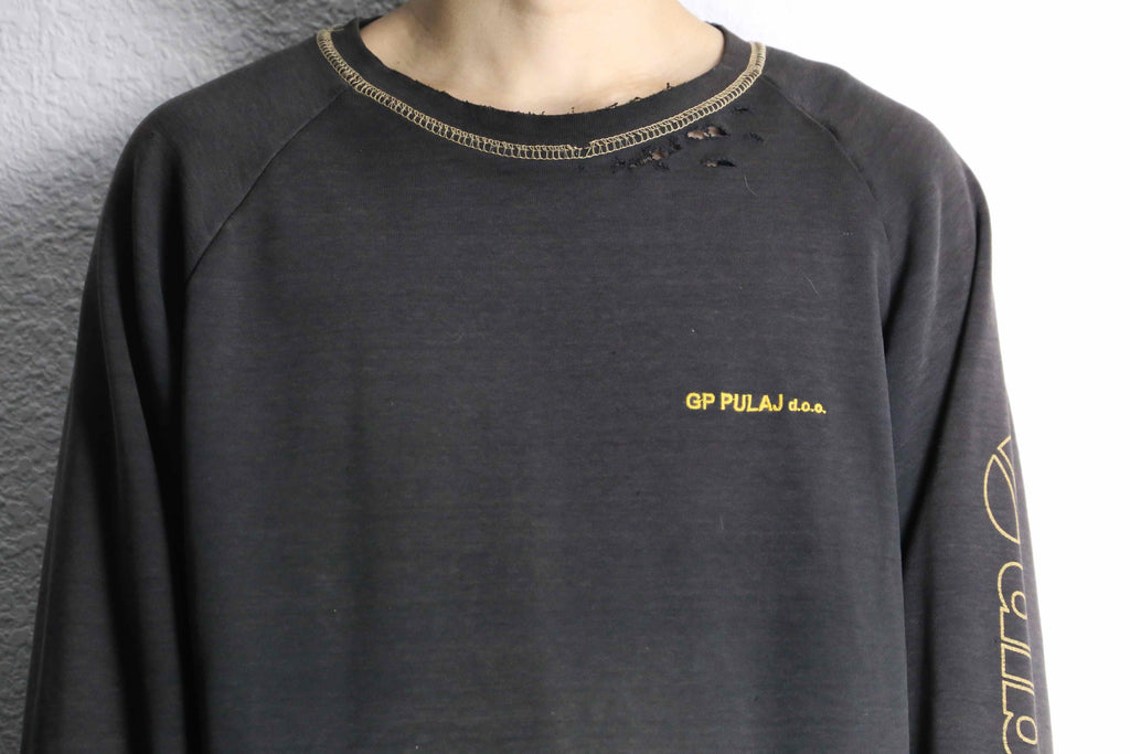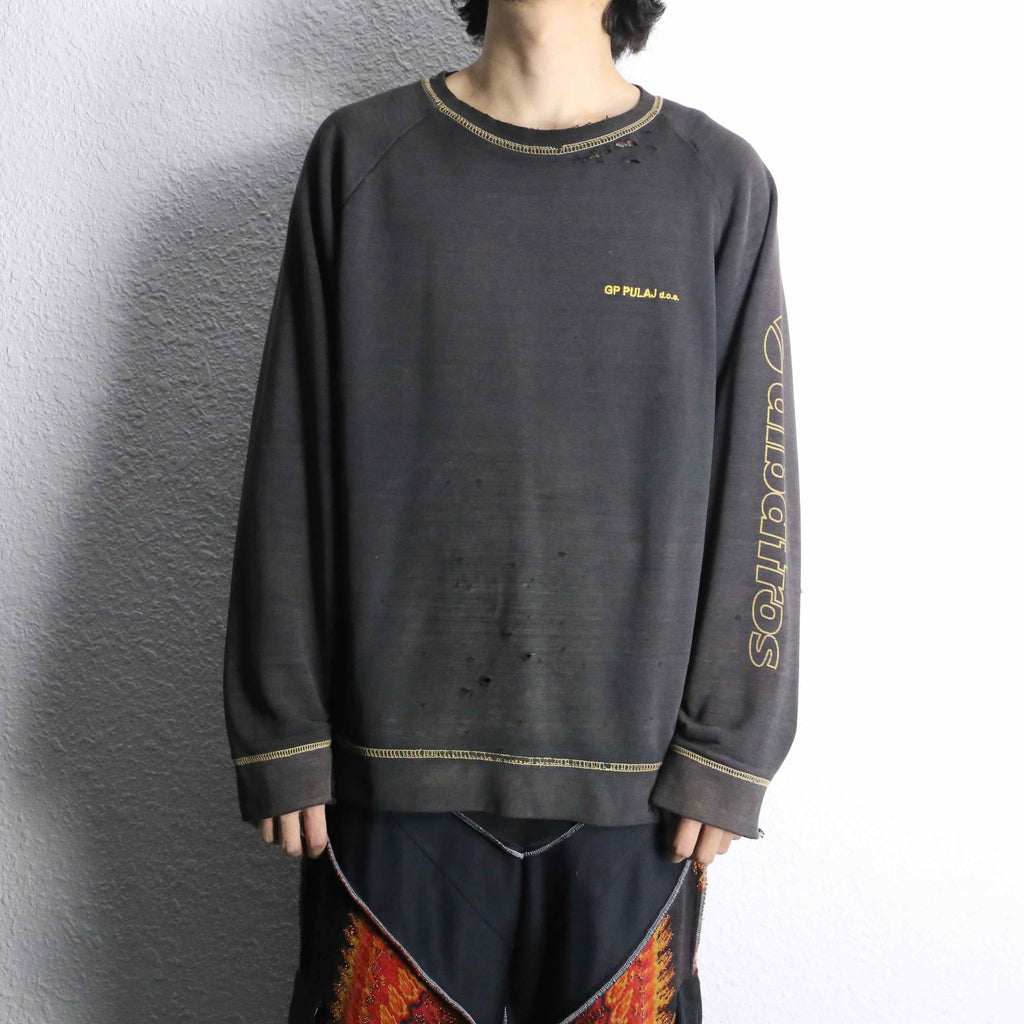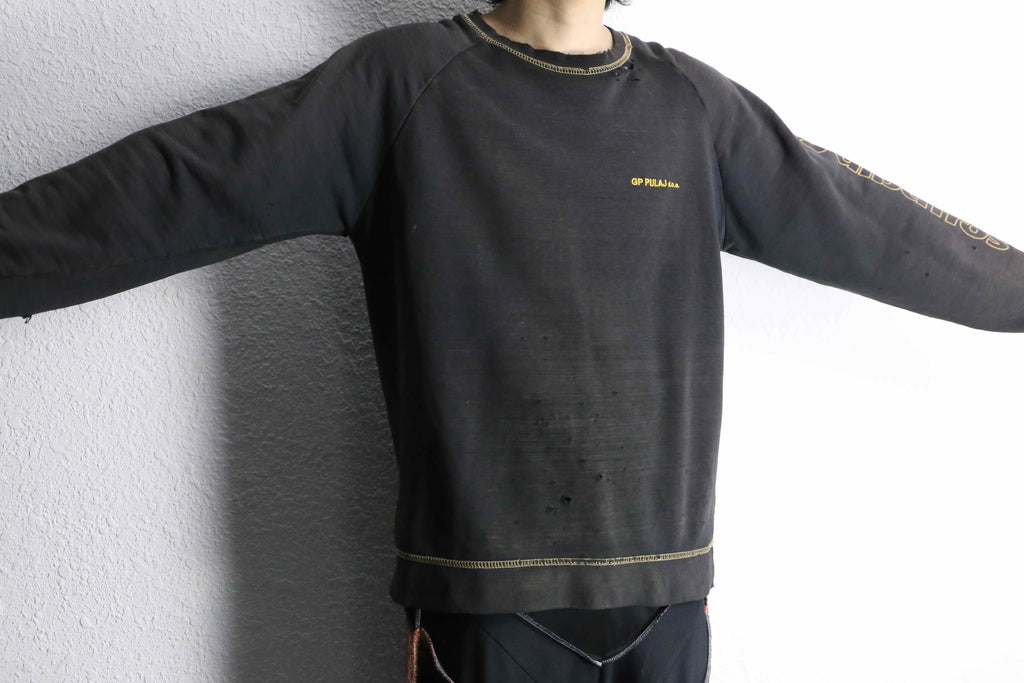 配色良好なワンカラーのボディにボロ加工を施して作り出された唯一無二。店頭でもご要望の声が多いボロ加工まで施された、正しく理想的なスウェット。シンプルですがシンプルすぎないのがいいところ。