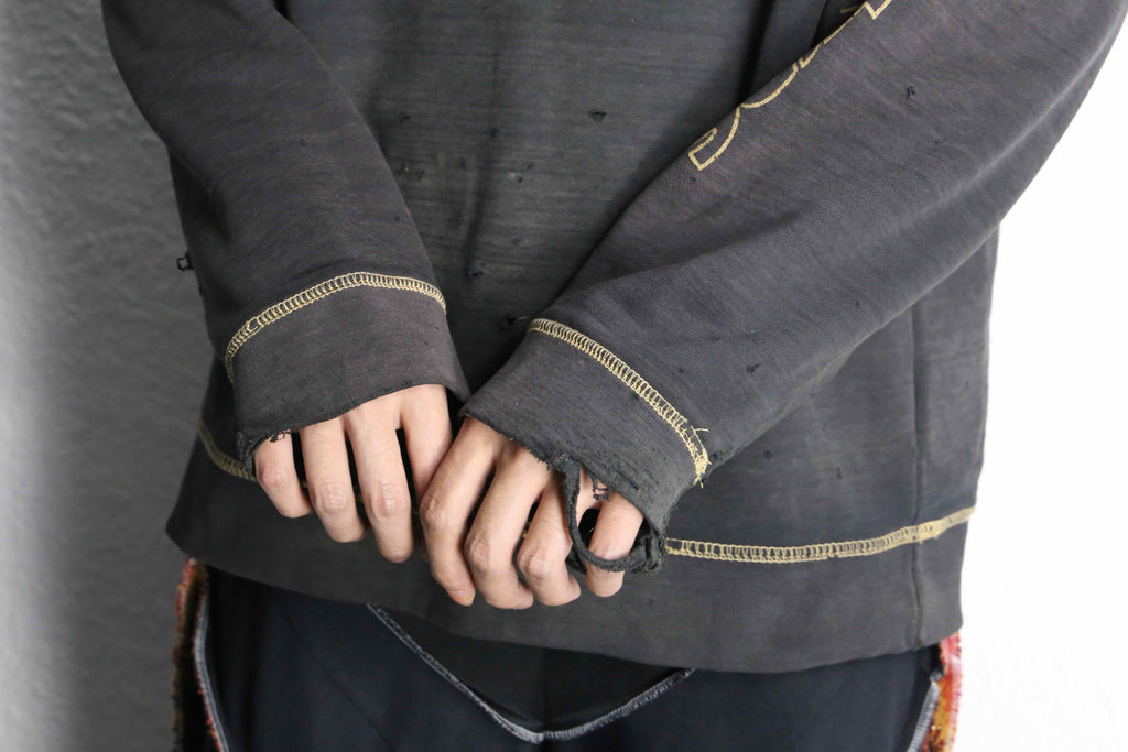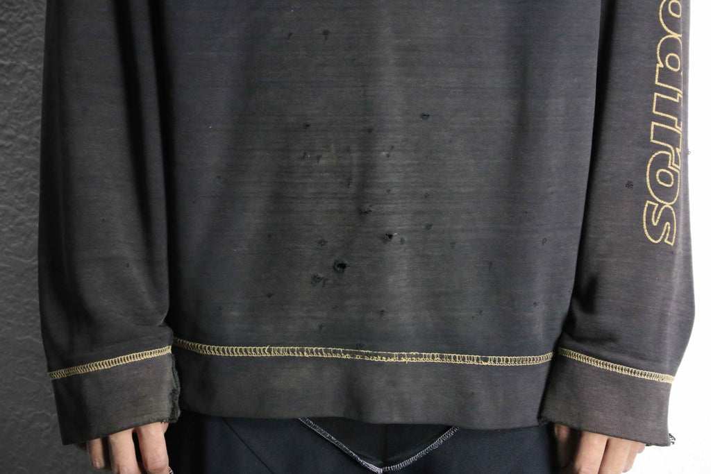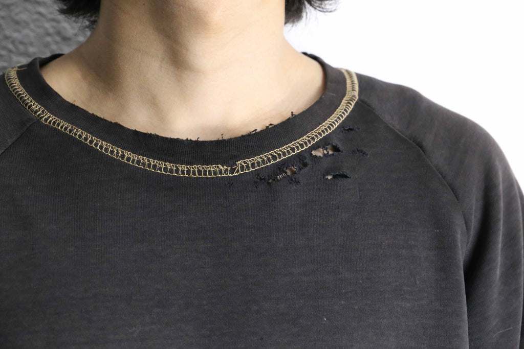 合わせやすいグレーカラーのボディに、ボロ加工が施されたスウェットの入荷です。