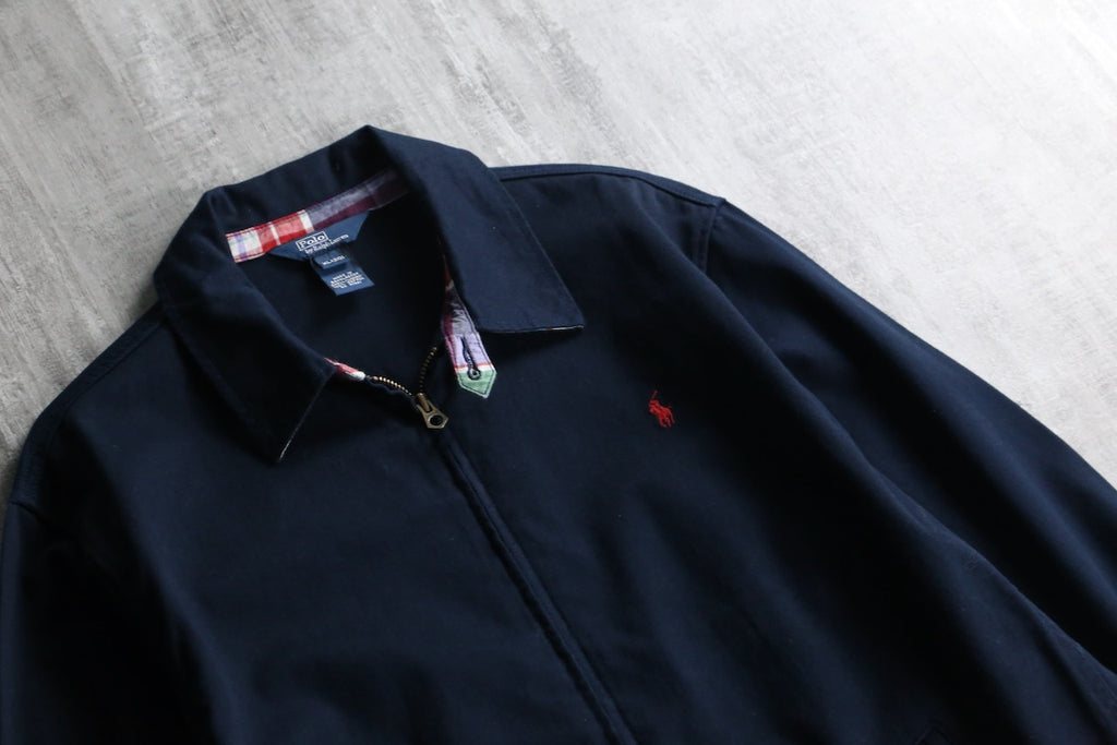 ラルフローレンの濃紺コットンツイルスイングトップ。