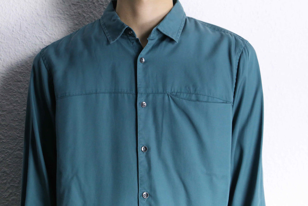 リヨセル100%ならではの上品な光沢とドレープが美しい表情。シンプルなシャツのシルエットに、胸元のシームポケットでさりげない遊び心をプラス。ベーシックなアイテムに目を惹くデザイン性を掛け合わせるのを得意とする“I.N.C”らしい一着です。