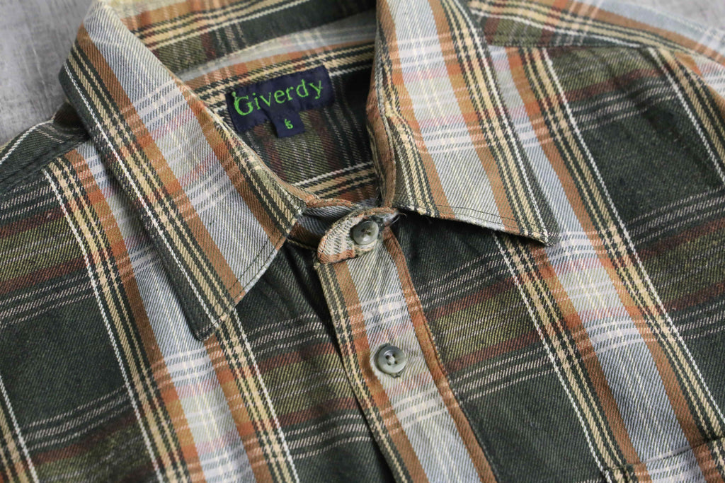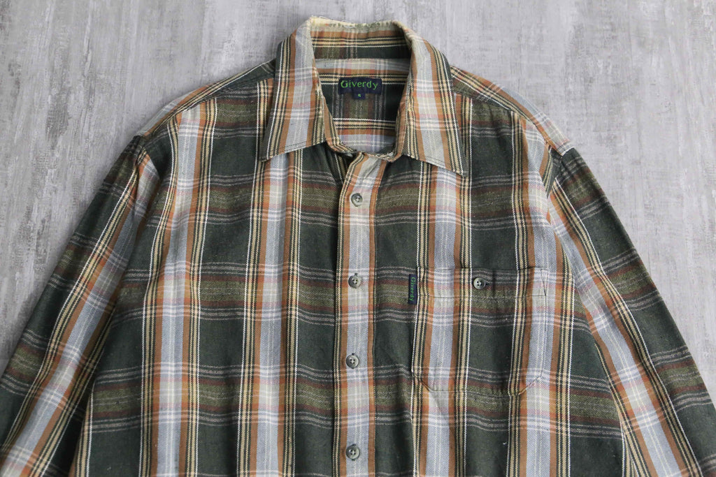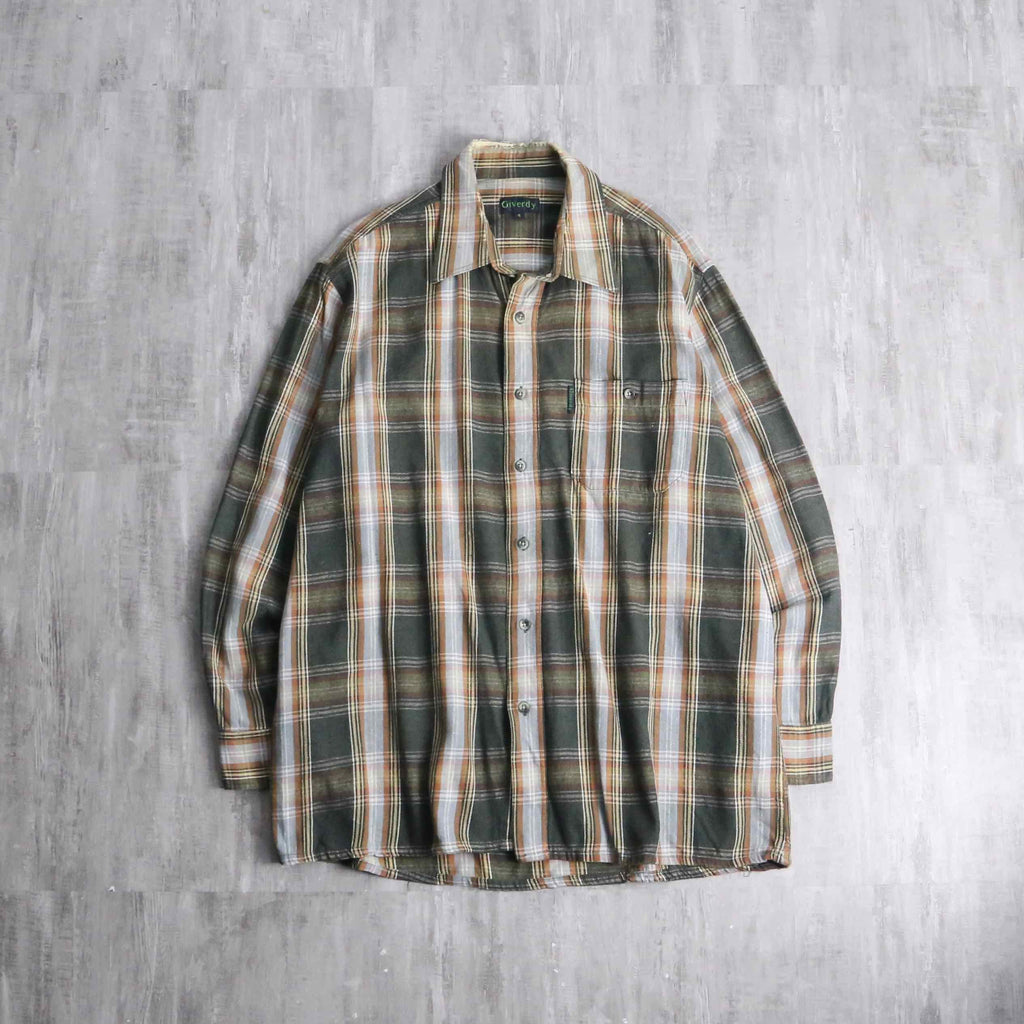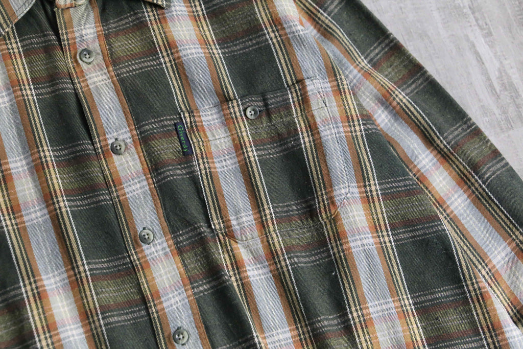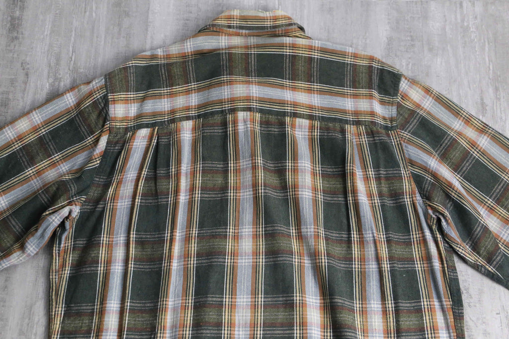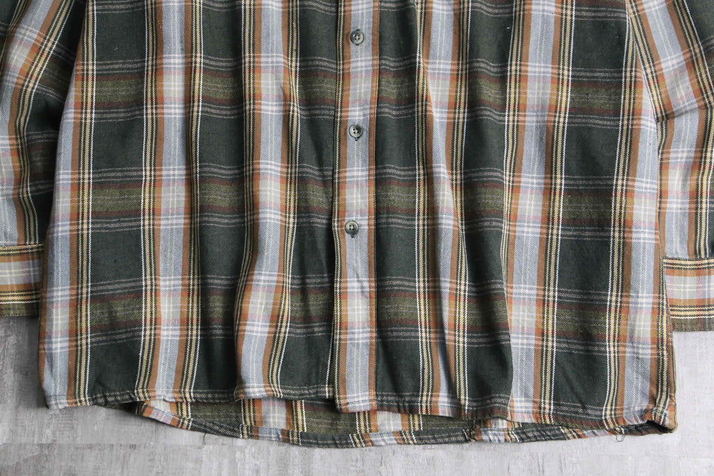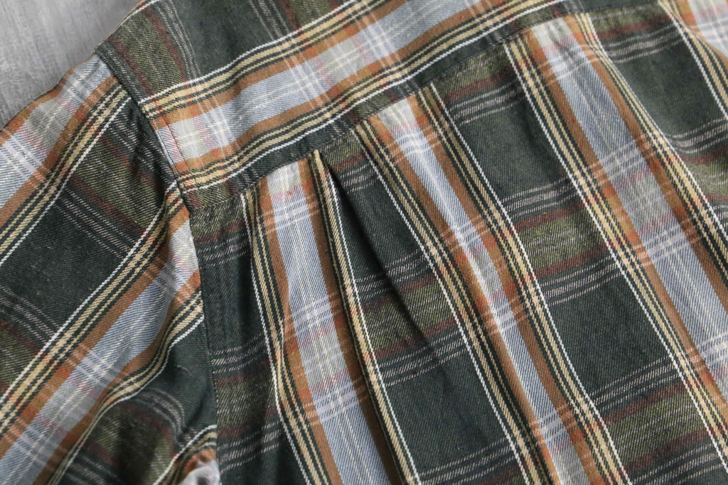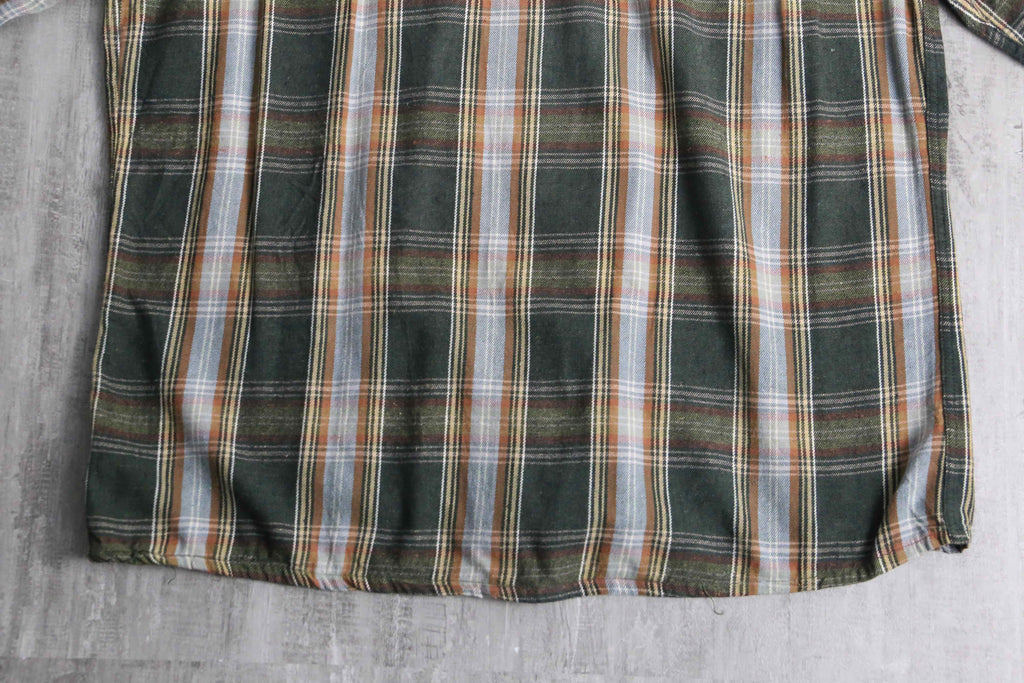 green base tartan check light flannel shirt