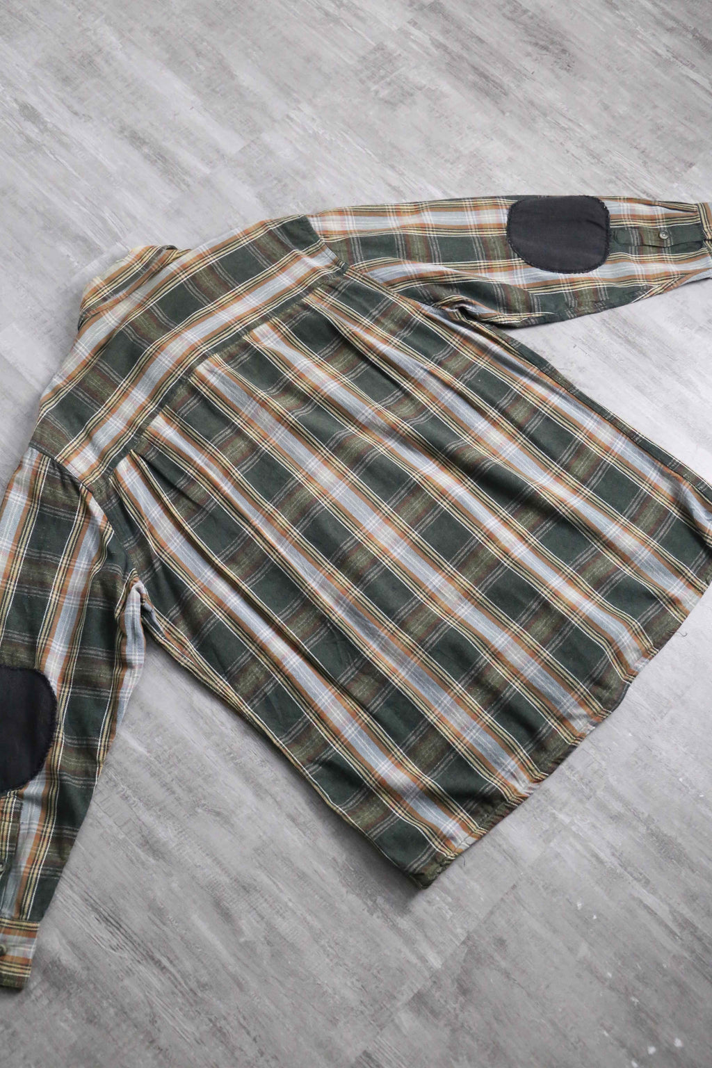 緑を主軸に橙、薄青といった具合の配色。1枚での着用は当たり前に、カーディガンの内側なんかにももってこいです。全く馴染んでいないエルボーパッチが逆に可愛いデザインなのも魅力です。
