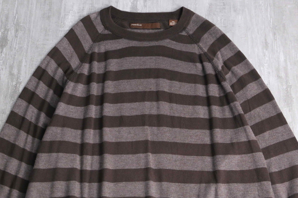 “PERRY ELLIS” horizontal stripe cotton acryl knit