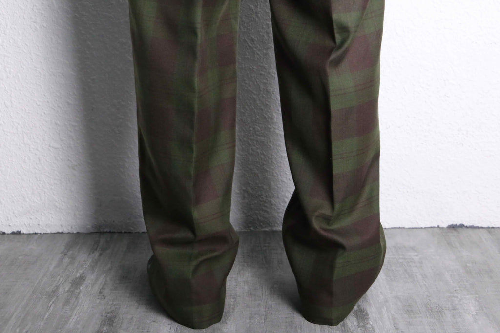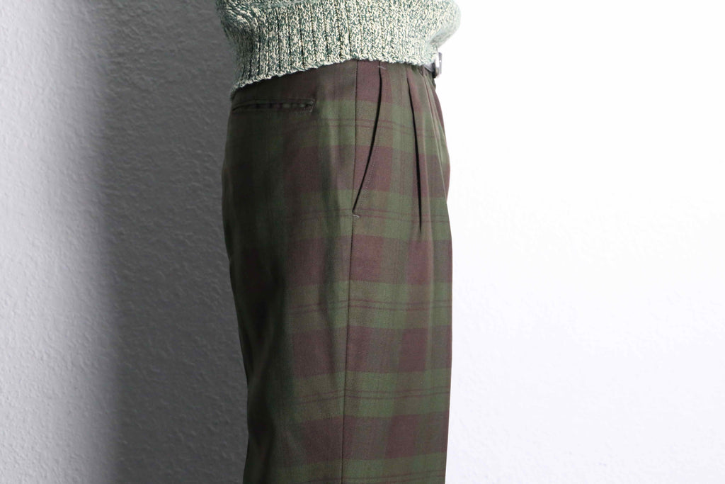 寒色×暖色の好配色チェック。なかなか探すと見つからないですよね。今回は薄手の通年履けそうなちょうど良いトラウザーズが入荷です。
