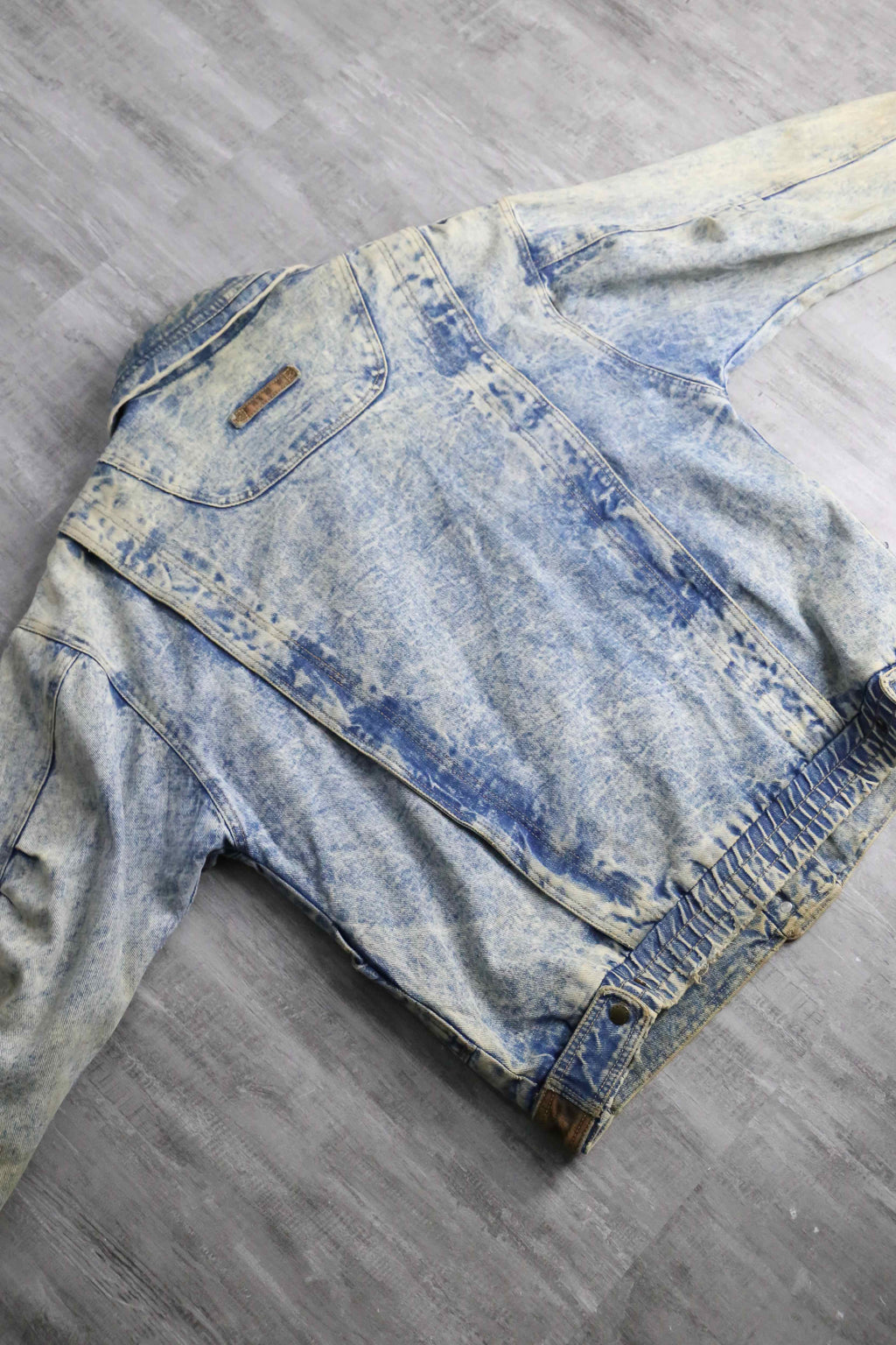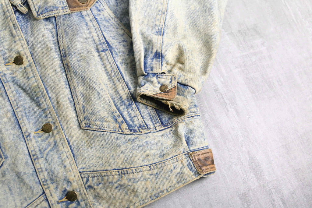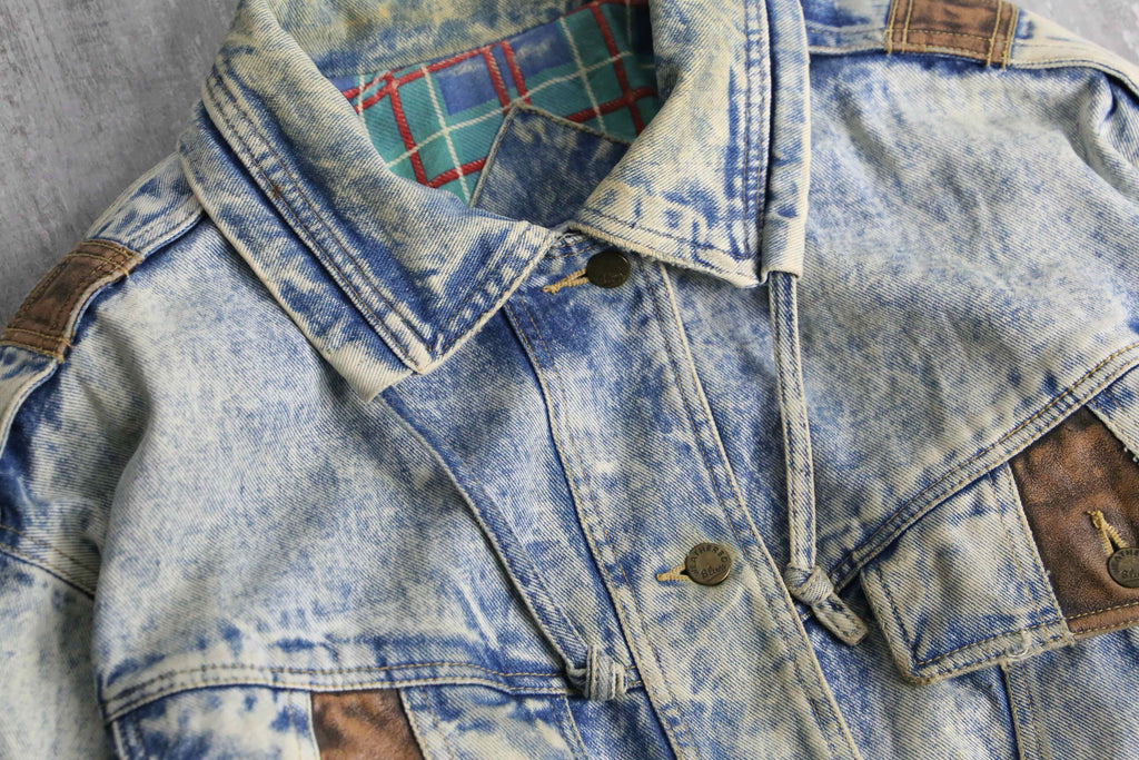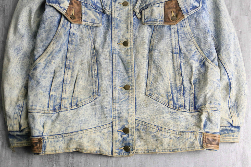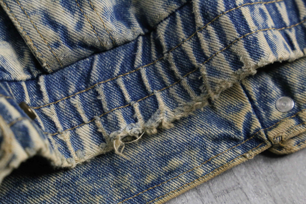 ブリーチ加工によるフェードボディにレザーの切り替えデザイン、更にはボンバーシルエットに近しい造形と、現代的な要素が巧みに詰め込まれています。年代自体はそこまで古くないと思われますが、その分こなれた着こなしがしやすく、この時期の羽織ものとして非常にハマりそうな1着です。ぜひ。