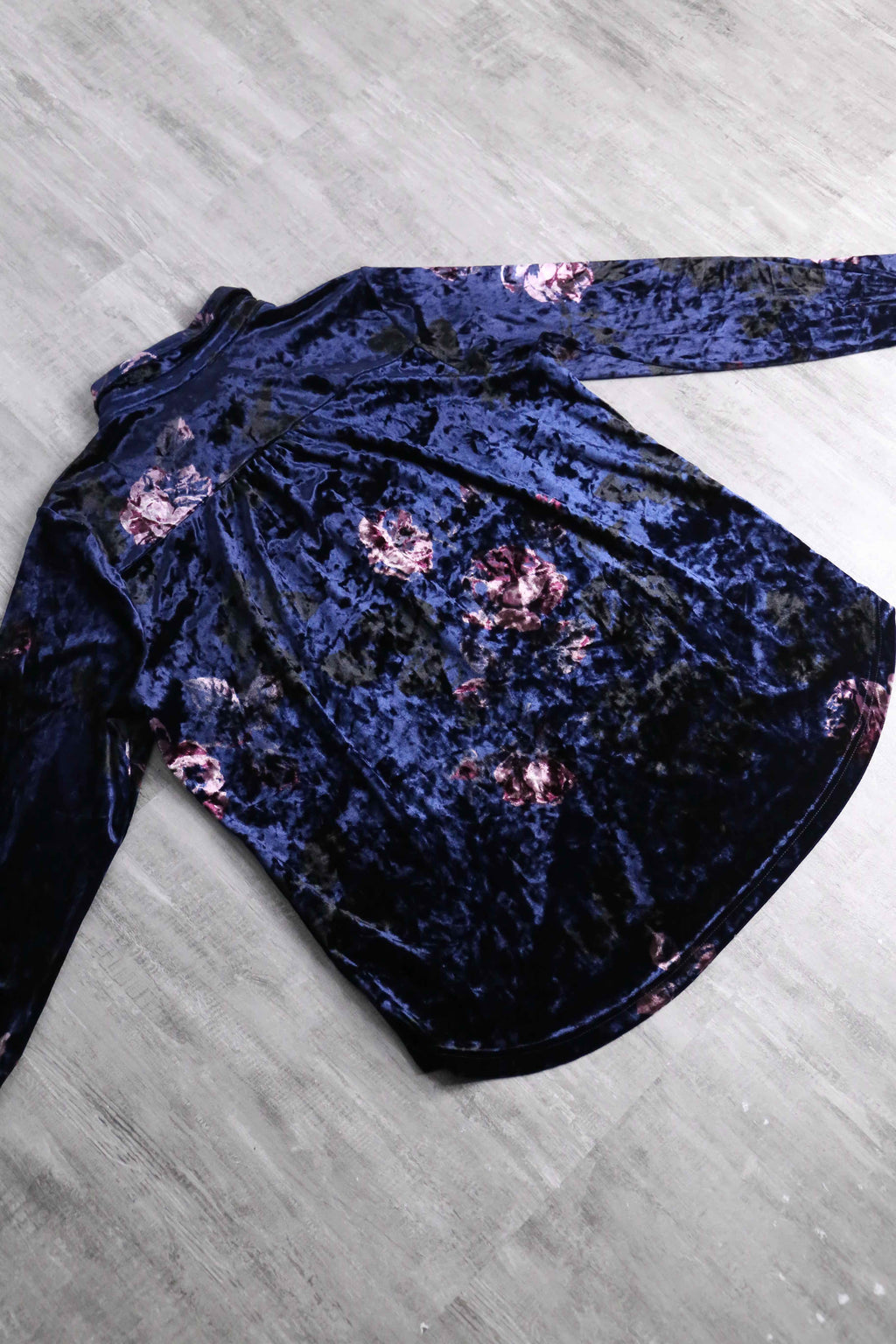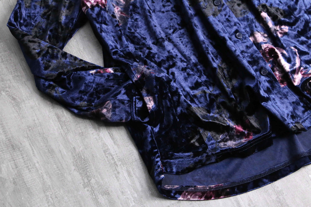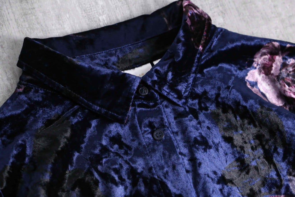 優美な発色や光沢加減をしたベロアシャツ。ボタニカルデザインでの入荷。