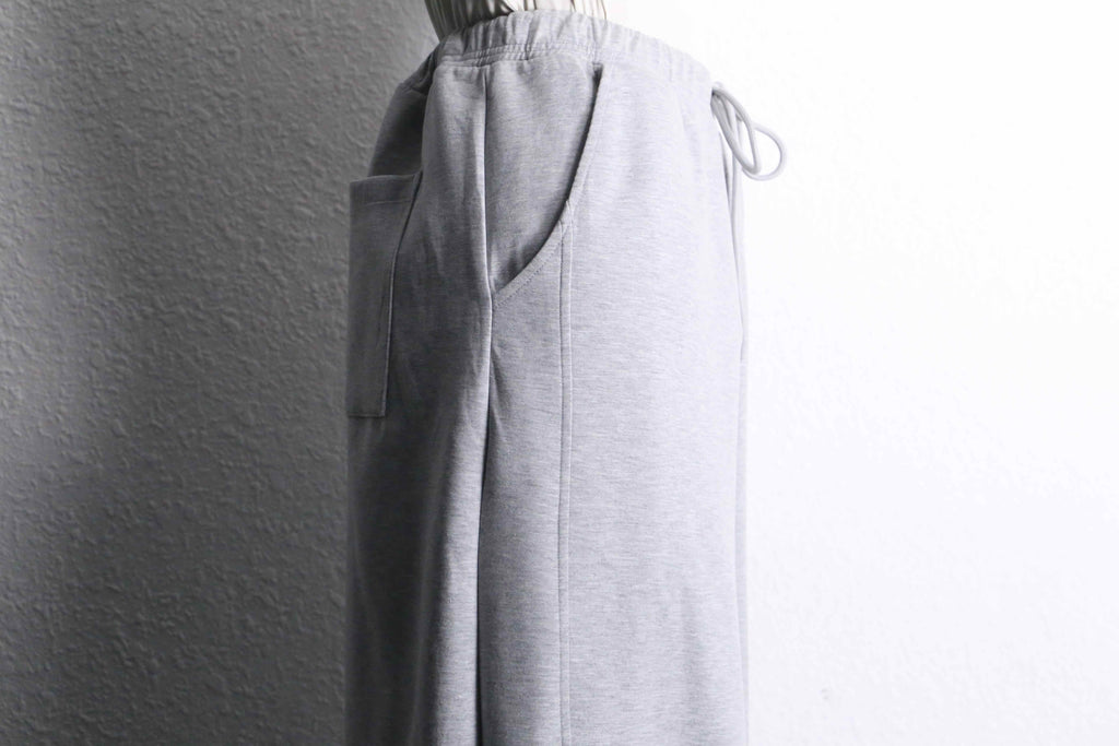 グレーの色味により様々な着合わせができるであろう配色、従来紹介していたスウェットパンツとは異なり、リプなしによる足元にゆったりと溜まるシルエット。流行り廃りはもちろん太めなのであるとは思いますが、是非共長く愛用していただきたい代物です。意外にもトレンチコートとの相性抜群です。