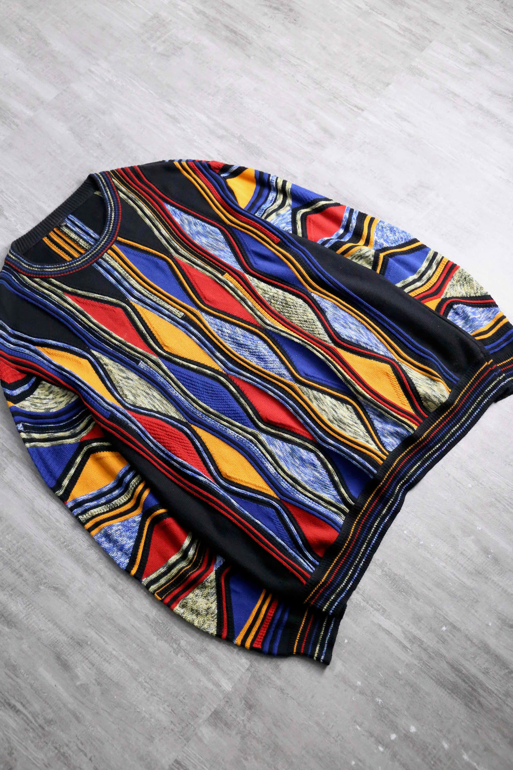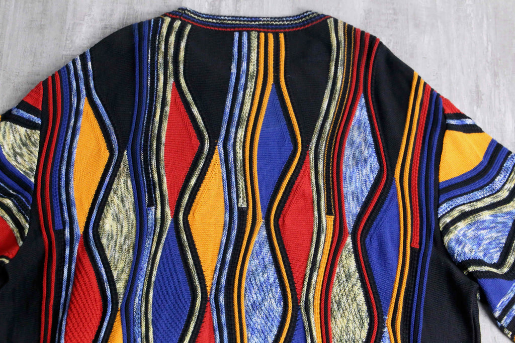 コットンを主軸とした素材混紡は重さがありながらも軽やかな肌触り。ステンドグラスの様な色味やデザインも個人的にすごく好みです。3Dニットの醍醐味でもあるゆったりとしたシルエットです。