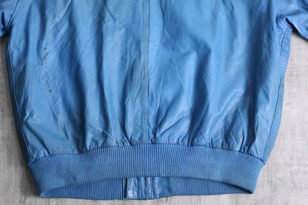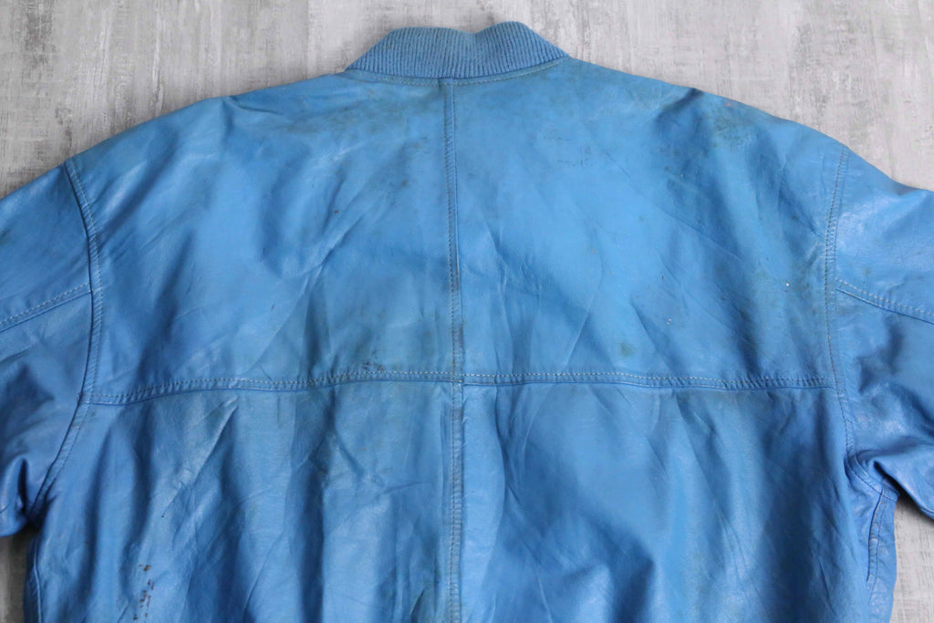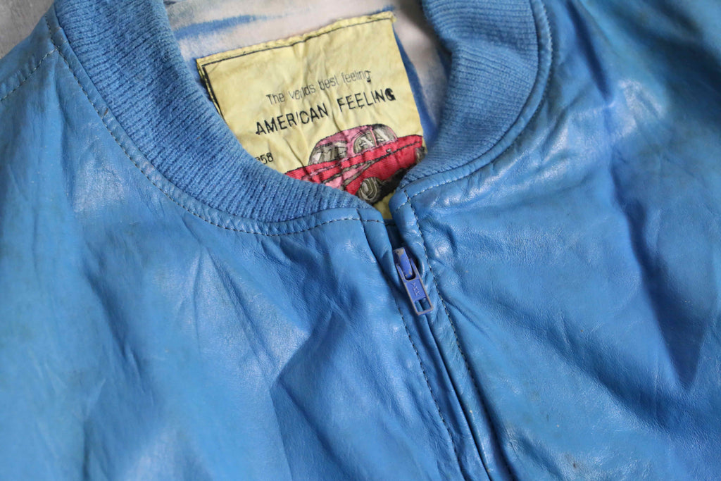 鮮やかなライトブルーのレザージャケット。ただでさえ色あるレザージャケットがない中ここまでいい色味のものが入荷できるとは思いませんでした。