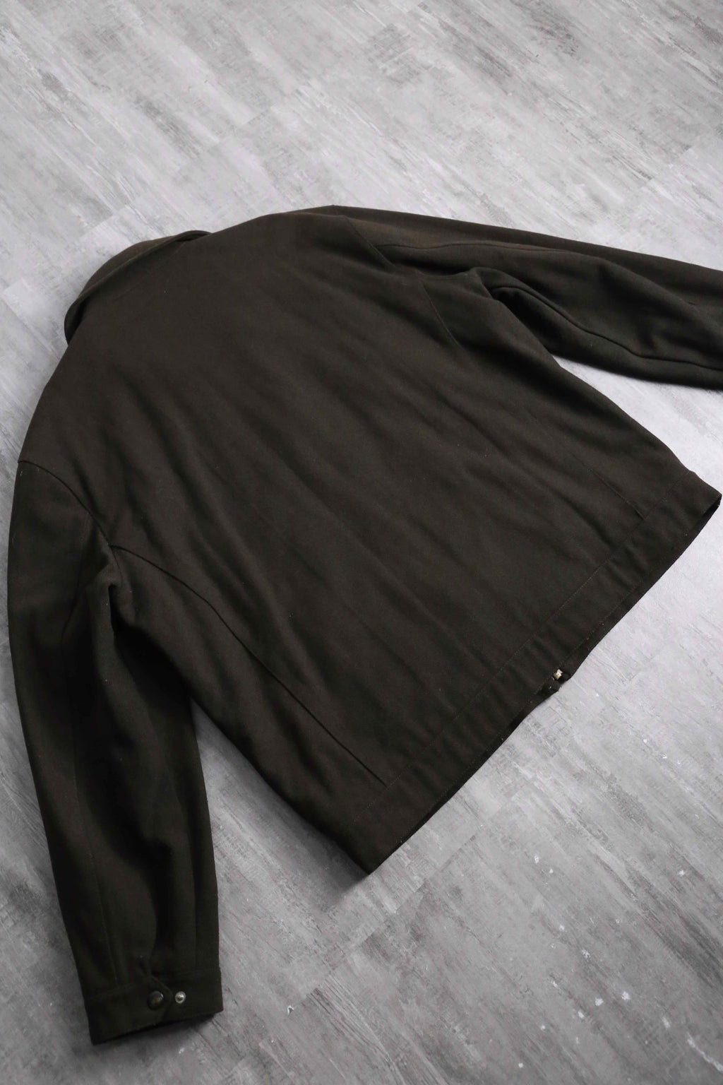 カジュアルな印象の強いブランドながら、茶系のずっしりとしたウール地で仕立てられた一着。身幅にゆとりを持たせつつ着丈をやや短めに整えた、まさにゴールデンサイズのバランスです。