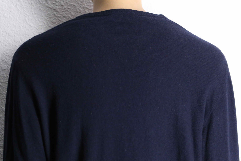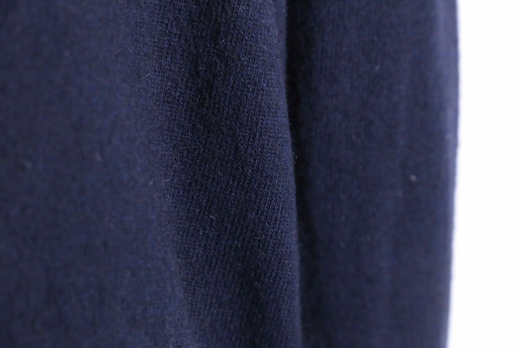 恐らくメリノあたりのウールを使用した、薄く柔らかな生地感。黒に近いような濃紺をベースに、濃淡の違う茶色に赤という目立つような配色は、内側に使って欲しいというブランドからの訴えかけなのかもしれません。