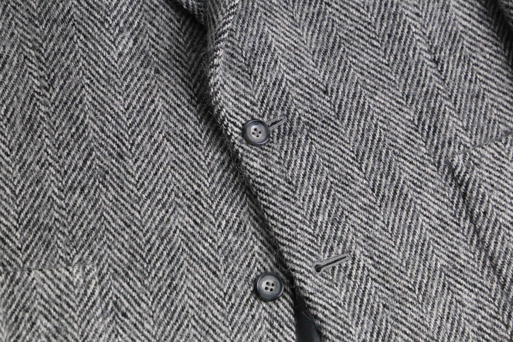 90’sらしい至極シンプルな造りながらも、ヘリンボーンという柄の選定や、ツイードなのにも関わらず素材選定のおかげか柔らかい生地。更には少しばかりの毛のたったシャギーな感じも素敵です。やはりこの時代はちょうどよくファッションに落とし込みやすいのを作ってくれてる気がします。