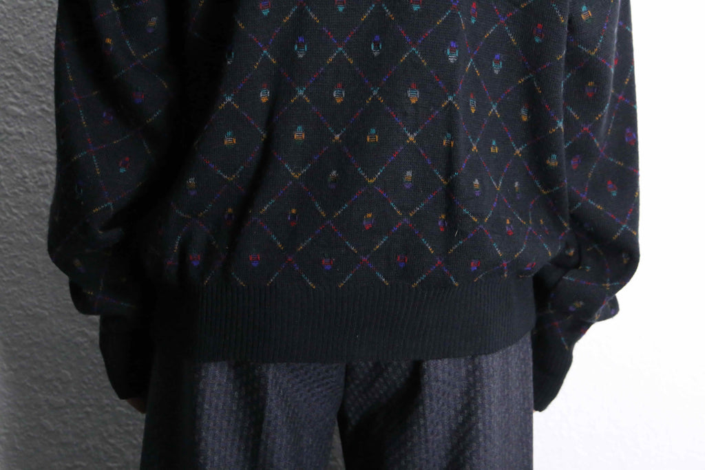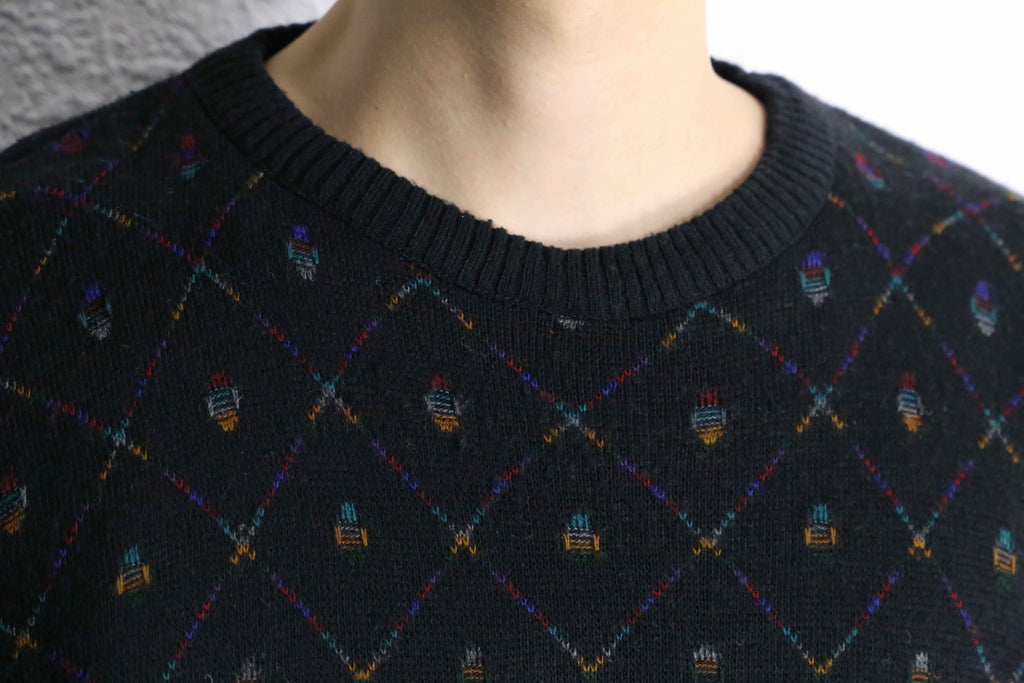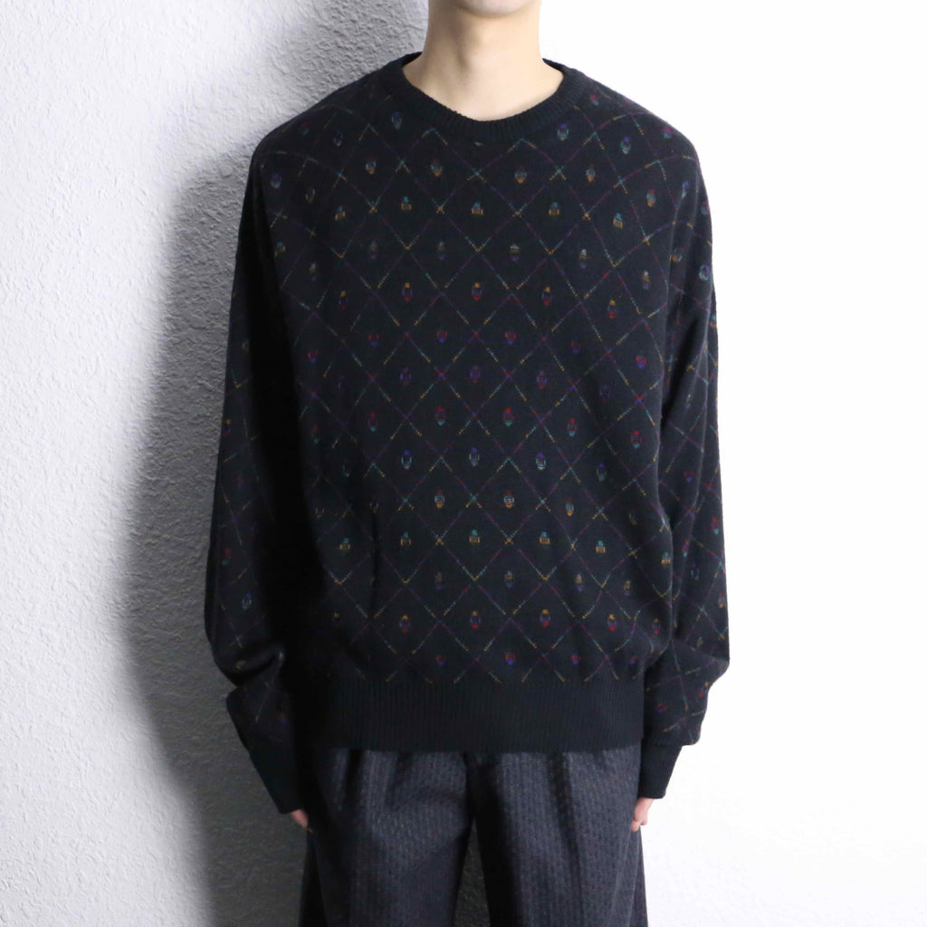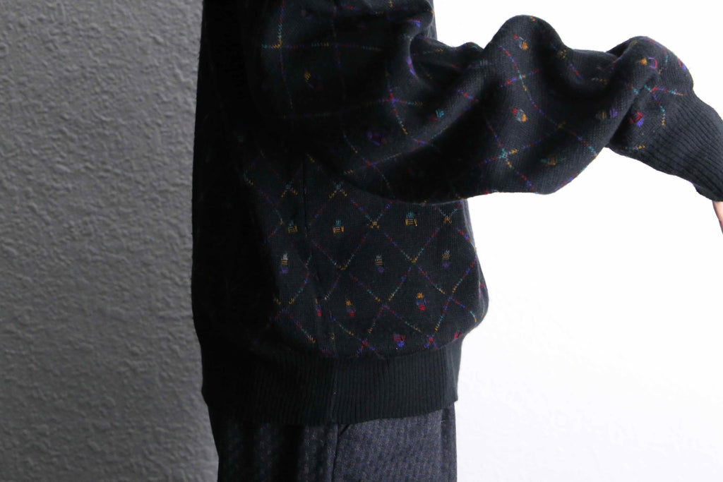 孔雀の羽模様とも見て取れた細い線で描かれた単調ながら美しいアーガイルの総柄ニット。