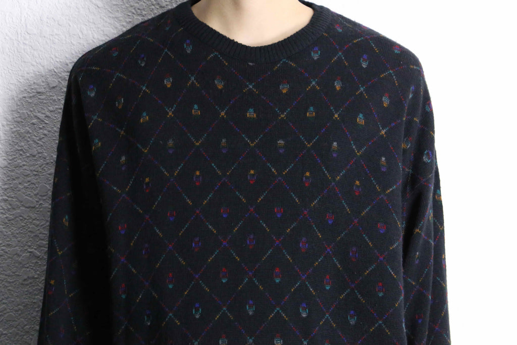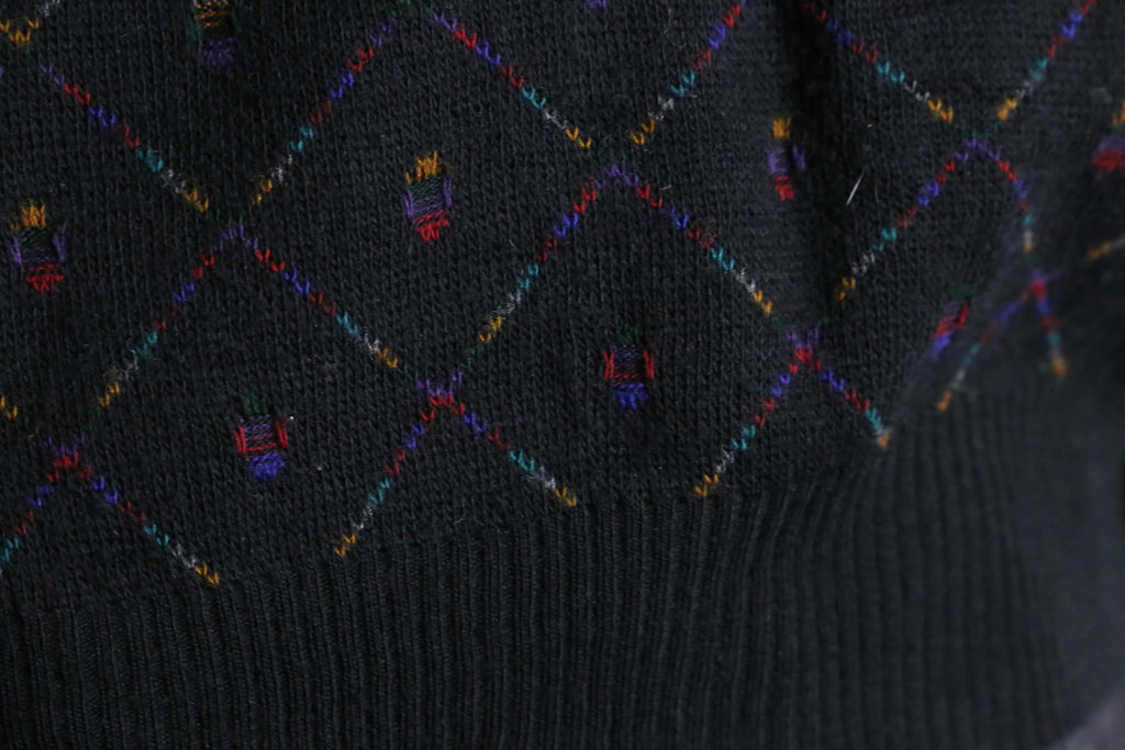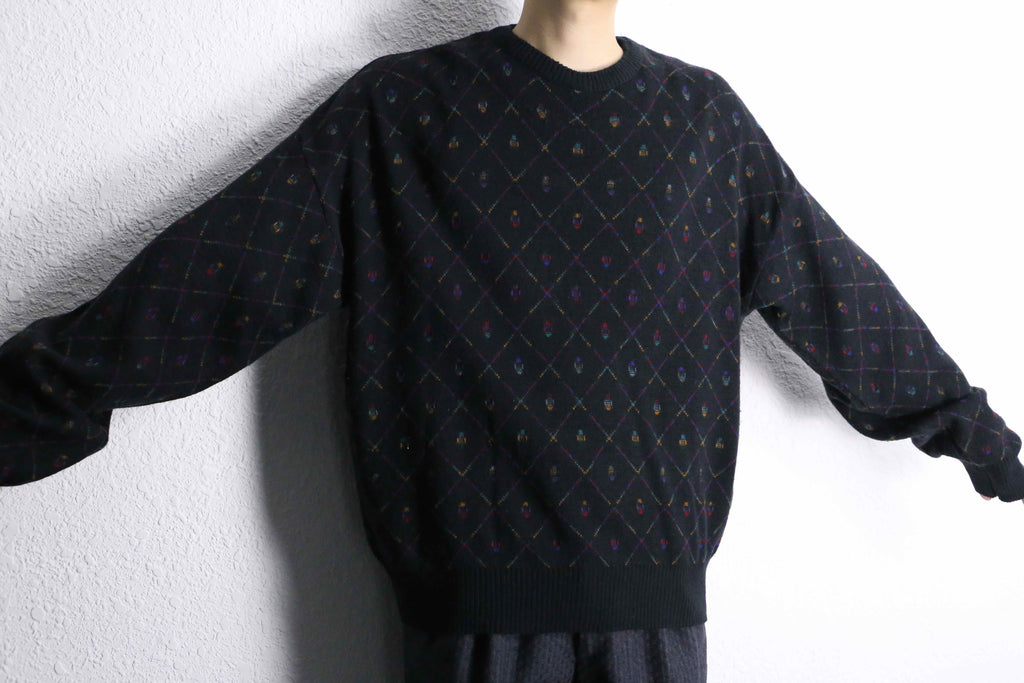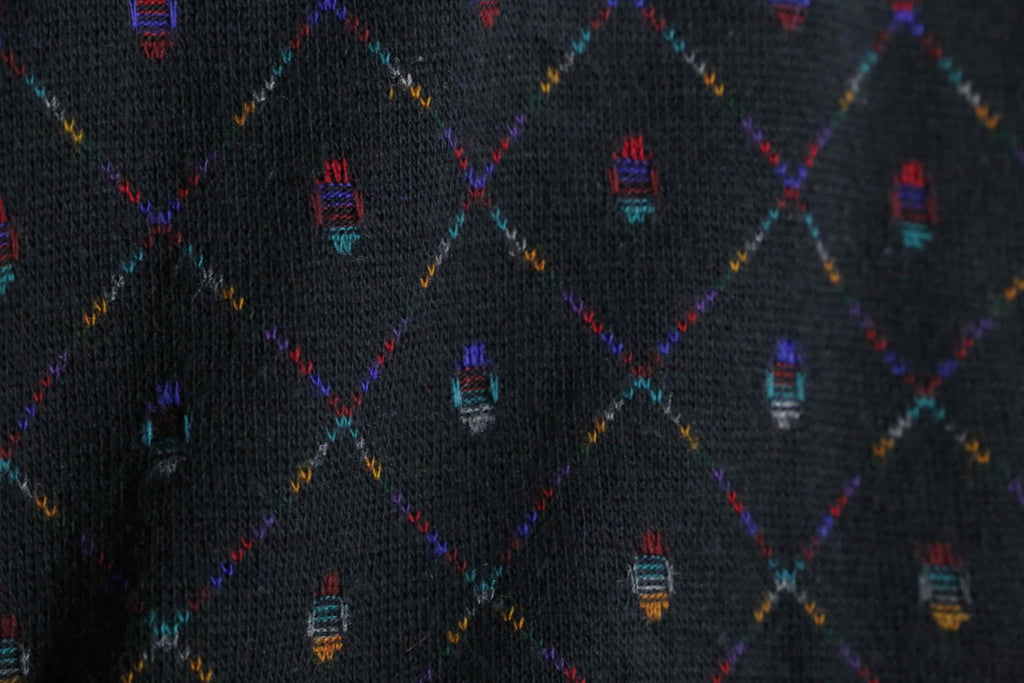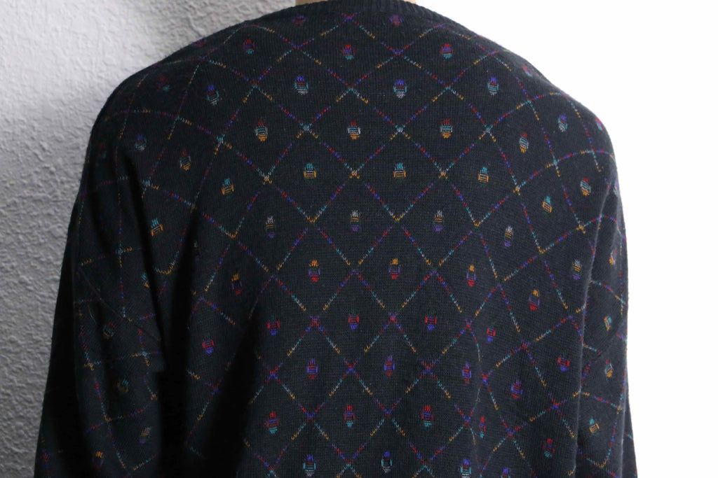 孔雀の羽模様とも見て取れた細い線で描かれた単調ながら美しいアーガイルの総柄ニット。